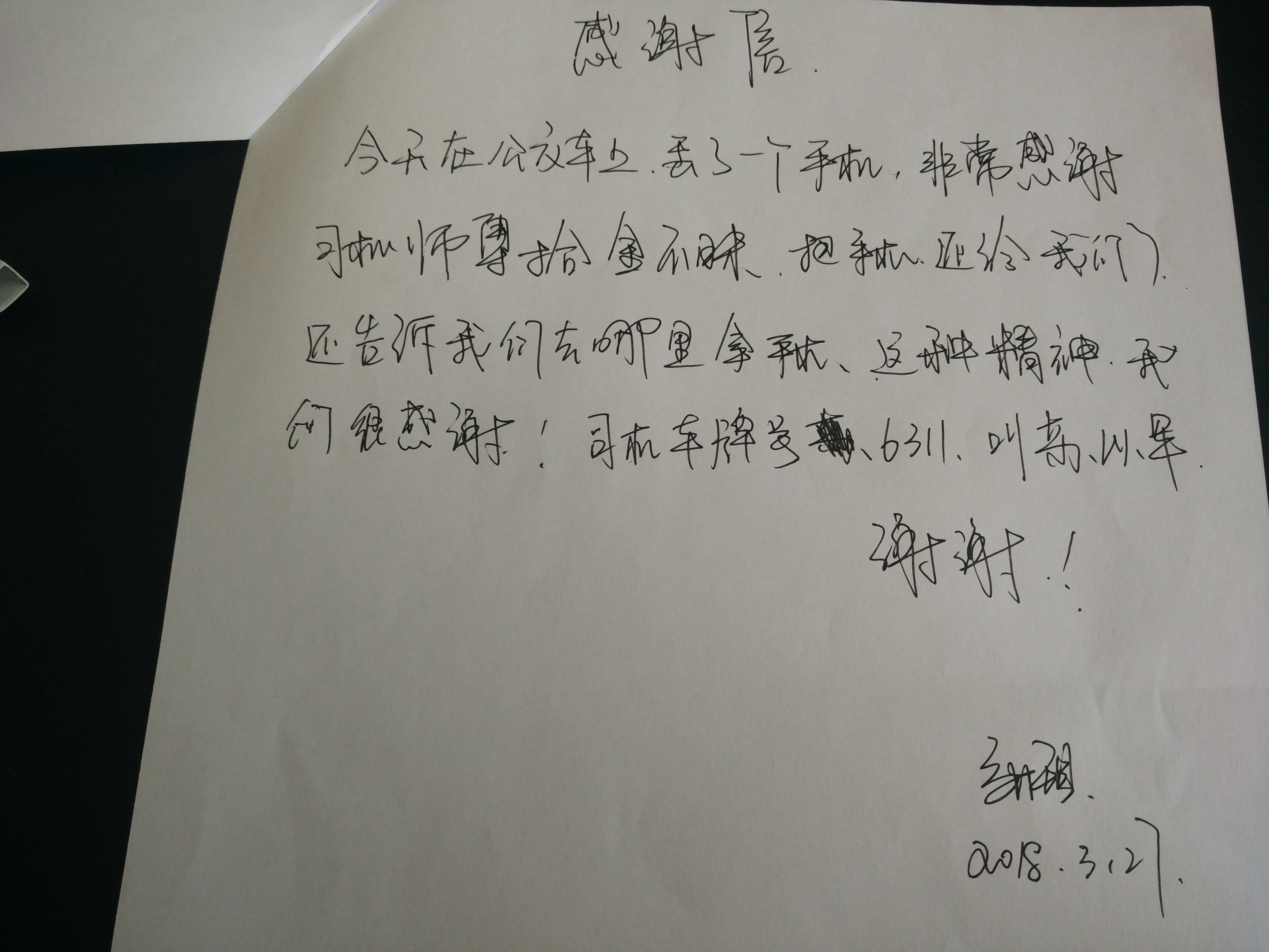 3月27日,乘客张女士乘坐公交601路至墟沟时,因下车匆忙不慎将苹果手机丢失在车上,车辆到达终点站后,驾驶员苏以军发现了该手机并及时交至公司办公室。同时,张女士经过多方联系到公交华亿app最新版下载,华亿(中国)东部公司办公室,得知丢失的手机在公交公司时,她非常激动。领取手机后,她当场写下感谢信,感谢驾驶员苏以军师傅拾金不昧的崇高品质。