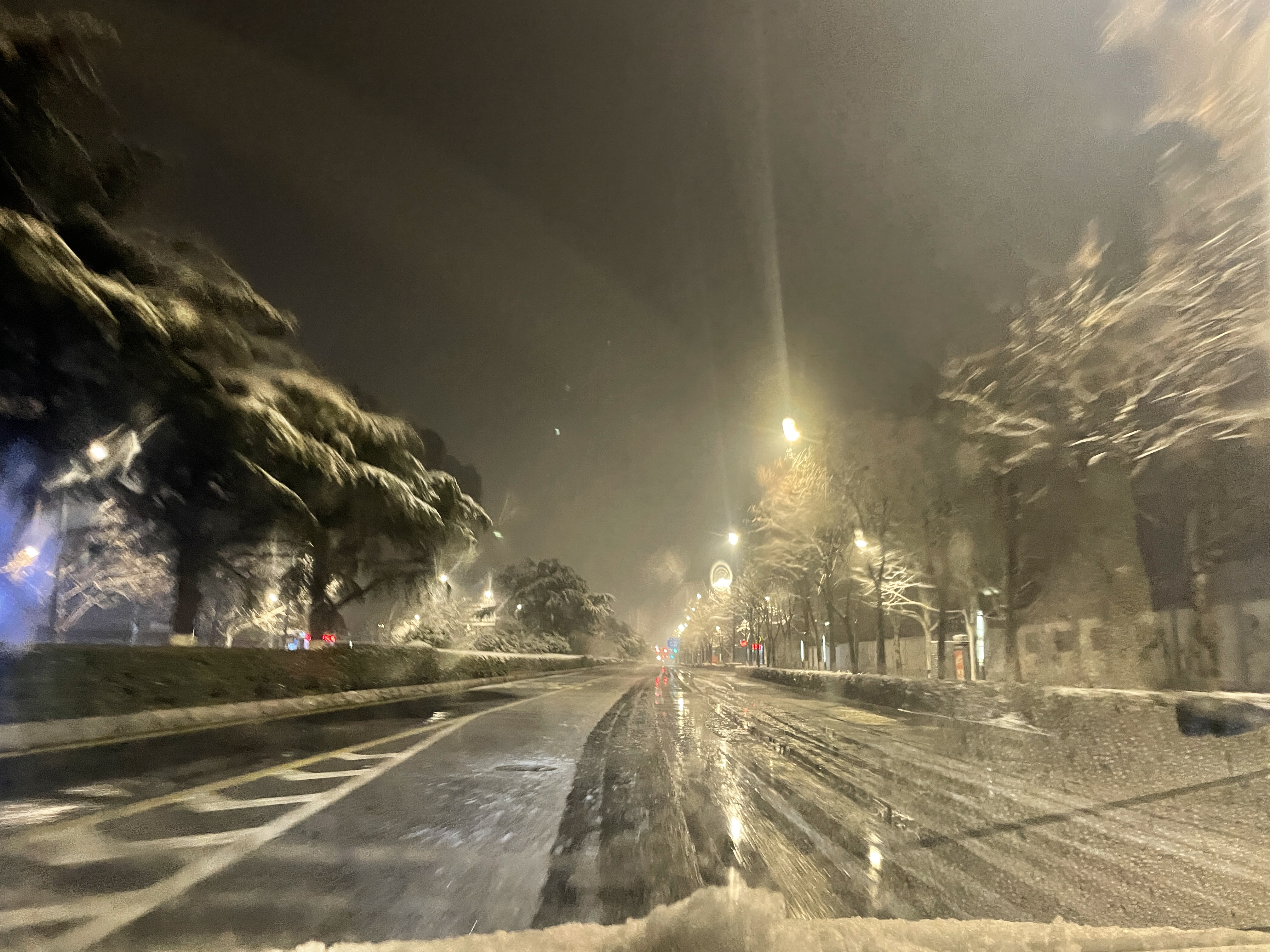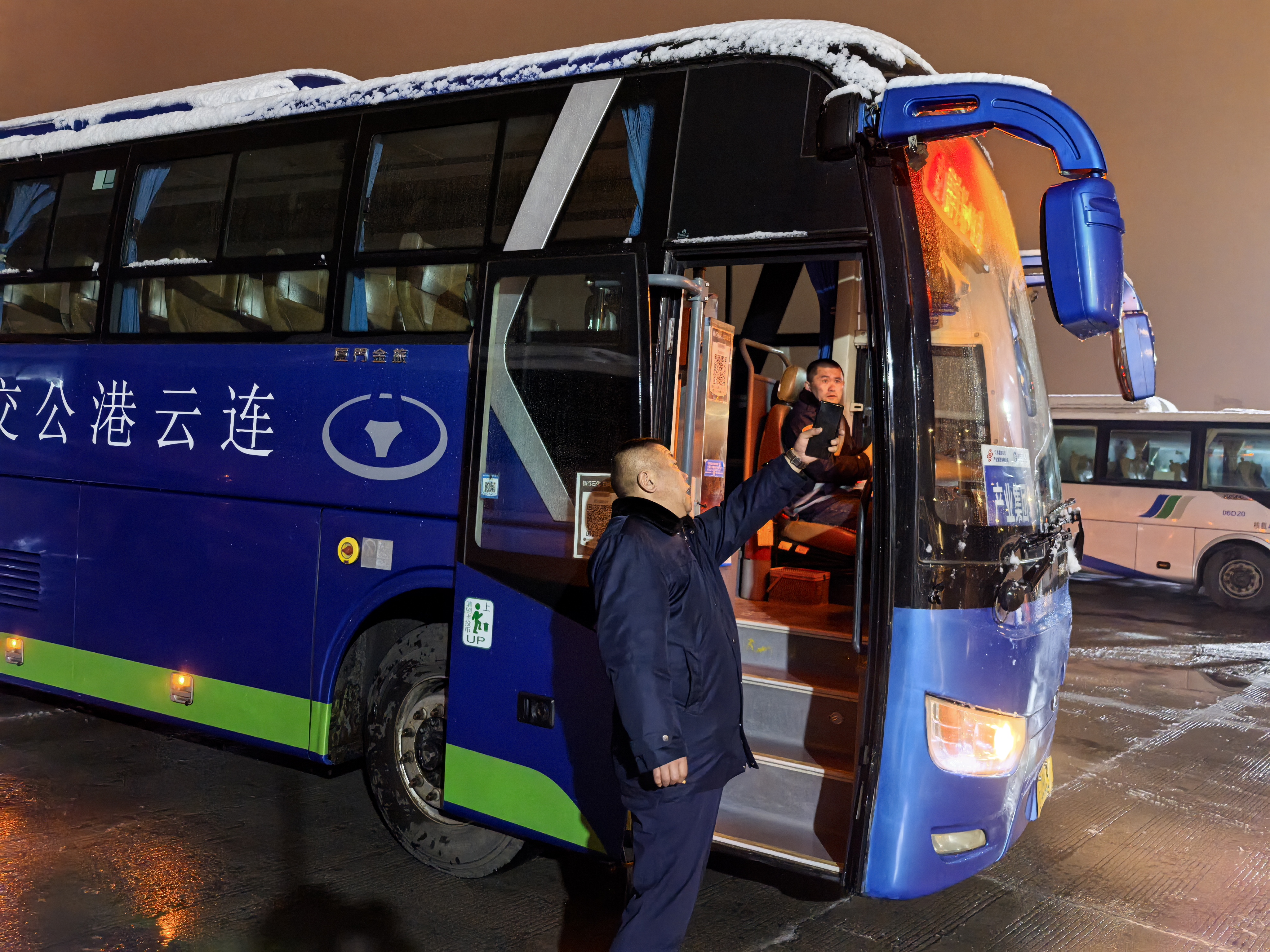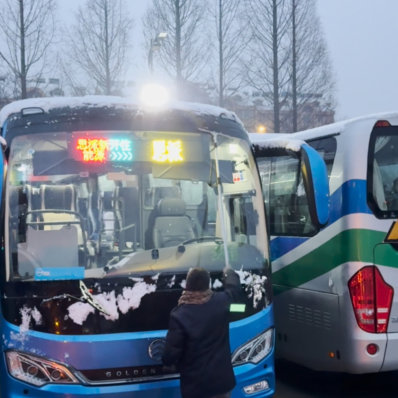这一夜,公交人的脚步从未停歇。场站内,应急小组使用各类除雪工具保障道路畅通;维修组裹紧棉衣,蹲在积雪的地沟里逐辆检查刹车和防滑链,手电筒的光束在车底晃动,呼出的白气凝结成霜;调度室内,值班员紧盯监控屏幕,手指在键盘上飞速跳动,实时调整线路发车计划;首班车驾驶员提前到岗,为车辆扫清积雪障碍;道路上,安管人员上路勘察,对重点路段严密提防;工作群内,路况信息不断更新,数据汇总确保车辆调度调整有方。天光微亮时,首班车灯刺破雪幕,站台上早起的老人看见干净整洁的站台,忍不住感叹:“这群孩子,怕是整夜没合眼!”
