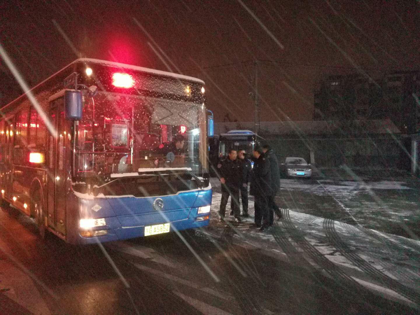 1月3日下午,海通公交根据雨雪警报组织召开专项会议,启动恶劣天气应急预案并部署保障方案。各个部室根据会议精神做好上传下达工作,沉着应对恶劣天气到来的影响。1月4日,是海通公交人的不眠之夜。凌晨2点,公司领导班子成员奔赴各路段,对公交线路涉及的城乡道路、桥、涵等容易结冰上冻的路段进行全面的试行、排查,针对各路段结冰上冻情况通过海通公交工作群及时以视频、总结形式反馈到车队,并根据雪情制定每条线路的运营方案。考虑到天气寒冷电车充电时间长,各分公司安排了5名机动驾驶人员及5台燃气机动车辆,保障运输运力。凌晨4点,公司组织人力在场站进行扫雪除冰,为防止车辆进出站场打滑专程撒上黄沙。信息中心的姑娘们,巾帼不让须眉,冒着风雪提前到岗,二级平台管理井井有条,她们利用信息化手段及时了解车辆运营信息状态,追踪车辆运营轨迹,确保信息反馈及时畅通。 凌晨4点半,驾驶员师傅们陆续到岗,这比第一班发班提前了一个多小时,从检查车辆、清扫车辆、预热车辆,丝毫不马虎,确保第一班车不晚点,服务乘客无间隙。分公司人员对驾驶员一一进行安全交待。凌晨5点50分,分公司管理人员尾随第一班车缓缓驶出场站,开始了一天的运营。