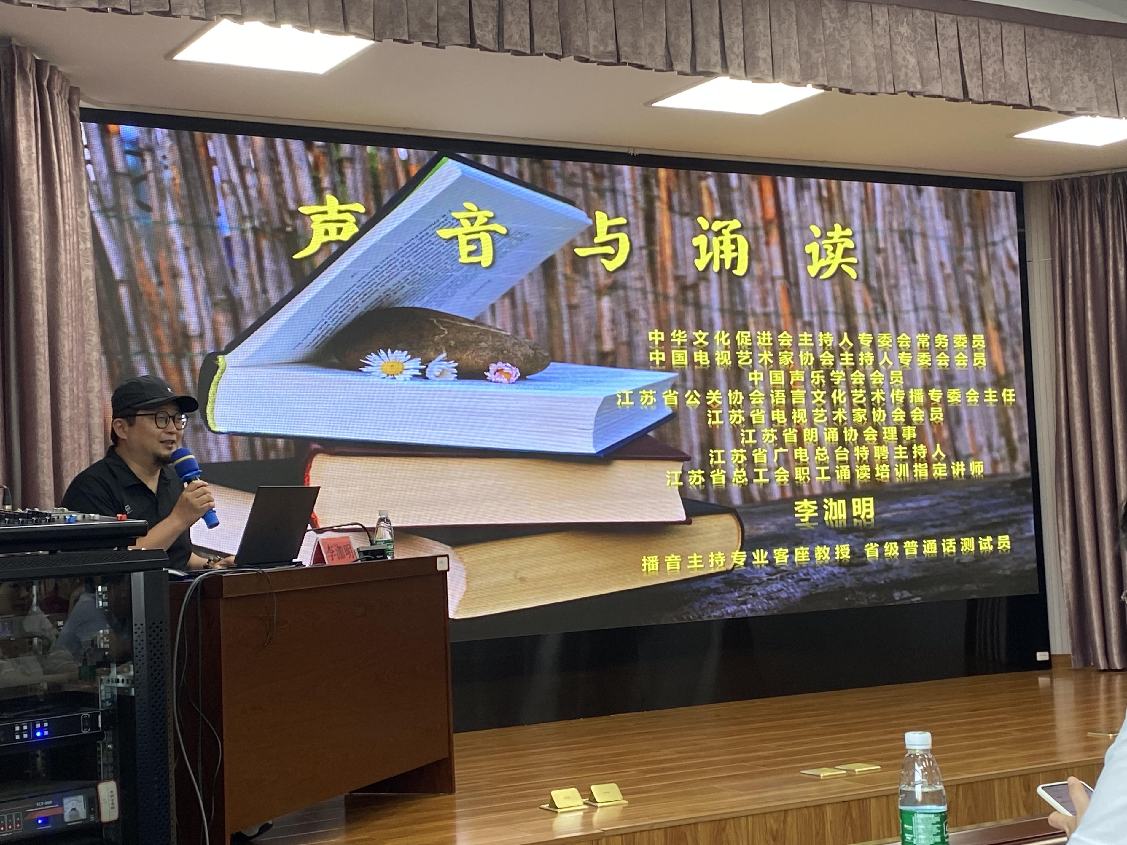 朗读与演讲培训由江苏省朗诵协会理事李泇明授课。李泇明老师分别从普通话语音、发声基本功声音色彩与魅力、语言表达技巧、作品朗读实操等方面,进行了深入浅出、诙谐幽默、精彩的讲授。会上邀请学员积极展示,现场纠错,通过学用结合,将所学知识融会贯通。参训职工认真聆听,踊跃发言,积极配合实操。