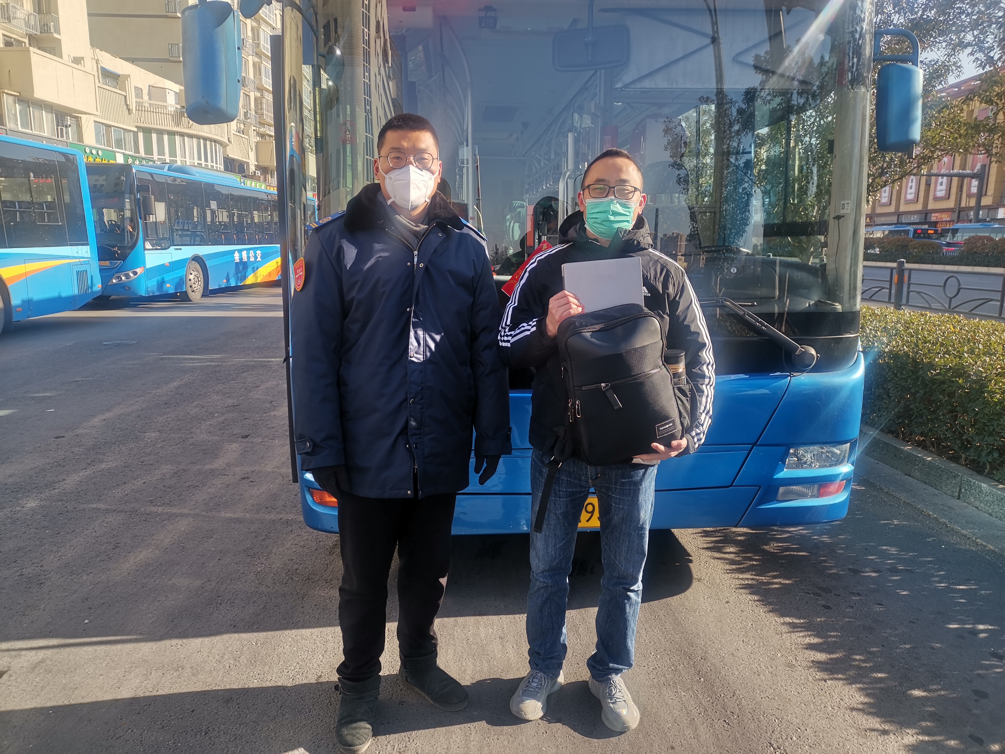 过了几分钟后,有个气喘吁吁的乘客跑来找包,经过了解后得知,失主曹先生是苏州人,带着家里人来连云港旅游,由于带的行李过多,下车的时候就忘记拿了最小的包。加上一家人着急赶火车,下车就往火车站跑了。拿手机看时间的时候,才发现背包没了,就赶紧往回跑,幸好背包被驾驶员师傅捡到并妥善保管好。因为很顺利地找回丢失的包,并没有耽误过多时间,赶上了回苏州的火车。曹先生对工作人员说:“连云港是个好地方,这里的风景好,人更热情,春节期间公交免费乘坐,没想到服务还这么好,下次还来这里旅游。”
