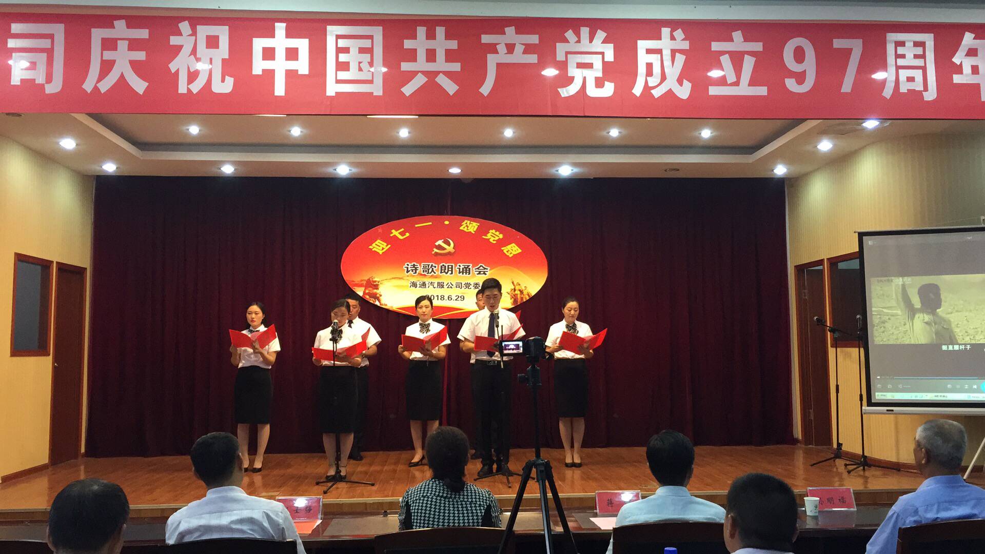 为迎接中国共产党建党97周年,6月29日下午,海通汽服公司党委召开了庆祝中国共产党成立97周年纪念大会暨“迎七一  颂党恩” 诗歌朗诵会。