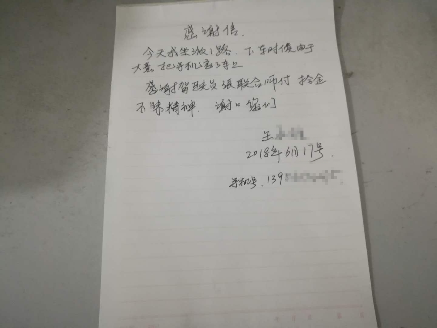 下午,王先生来到西门车站,顺利取回丢失的手机。他当场写下了一封感谢信,对驾驶员张联合的帮助表示感谢,为港城公交人点赞。