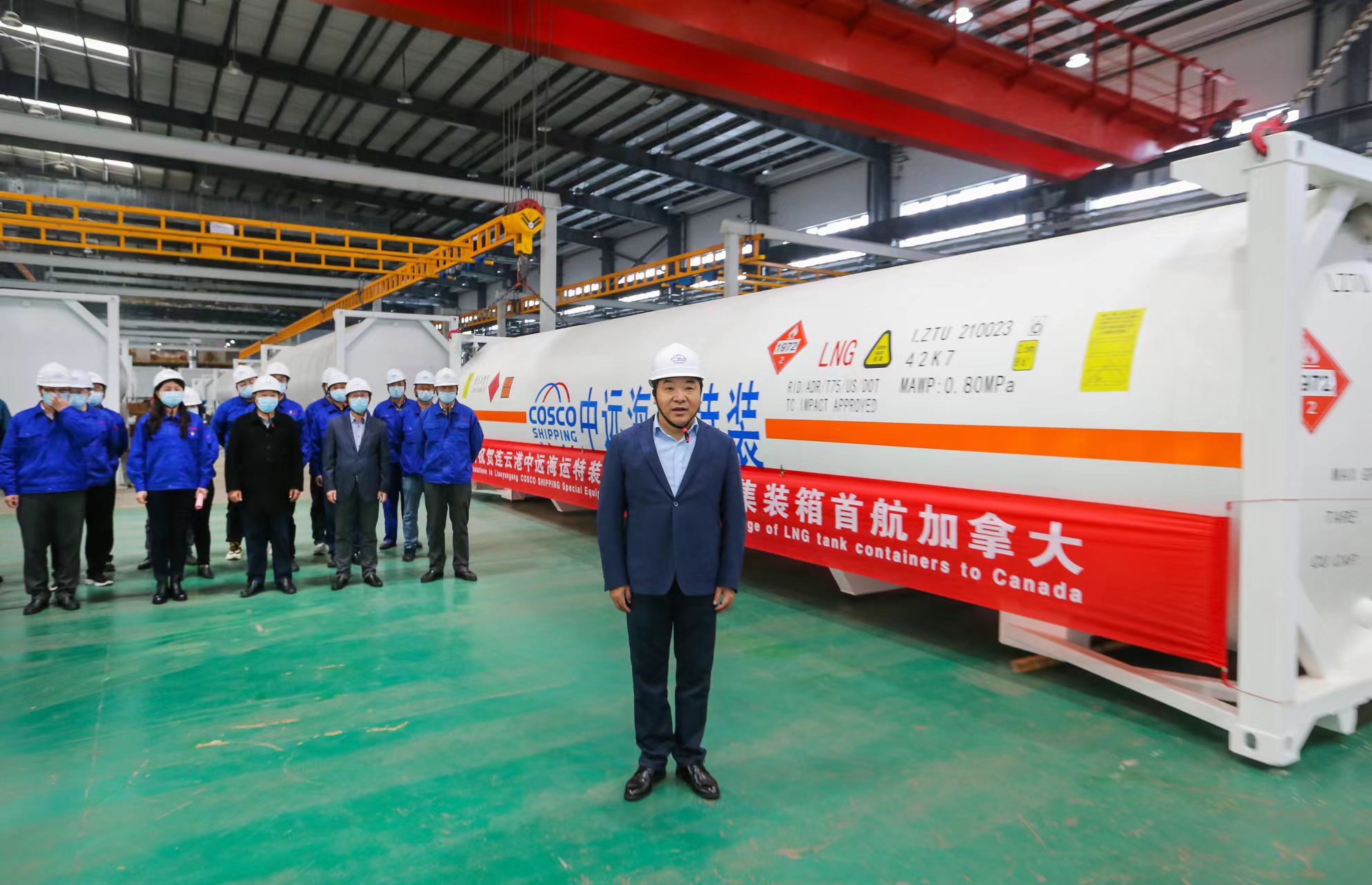 11月24日下午,交控物流华亿app最新版下载,华亿(中国)LNG罐式集装箱首航加拿大发运仪式在中远海运特装公司成功举办,交控物流华亿app最新版下载,华亿(中国)总经理张国兴、副总经理左志军、总经理助理王高林及相关部室负责人、特装公司部分领导班子人员参加。