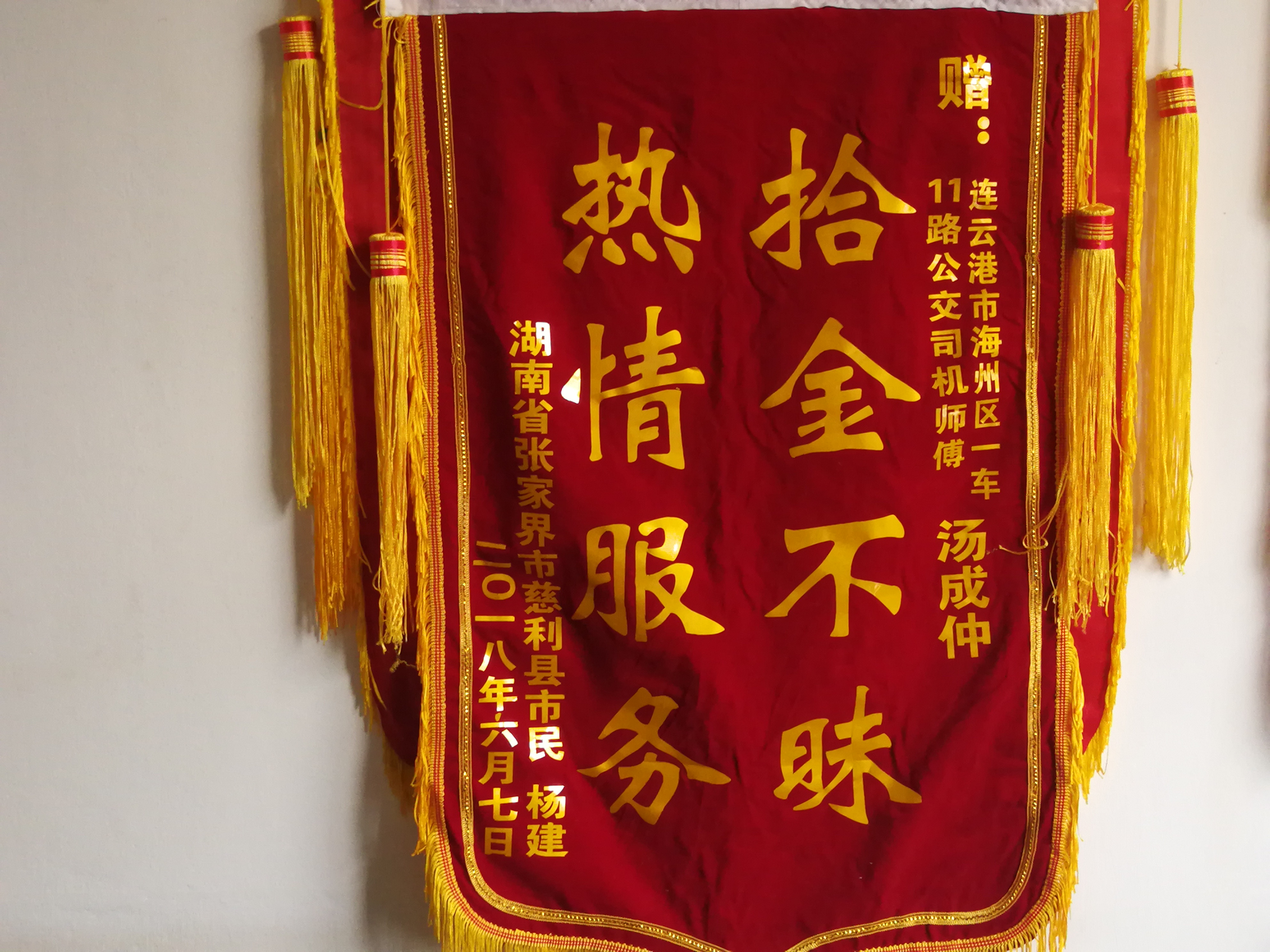 杨先生称港城公交司机拾金不昧的高尚道德情操使他感受到了人心的温暖。当即写了一封感谢信对汤师傅表示感谢,几天后公司又收到了杨先生邮寄来的锦旗。