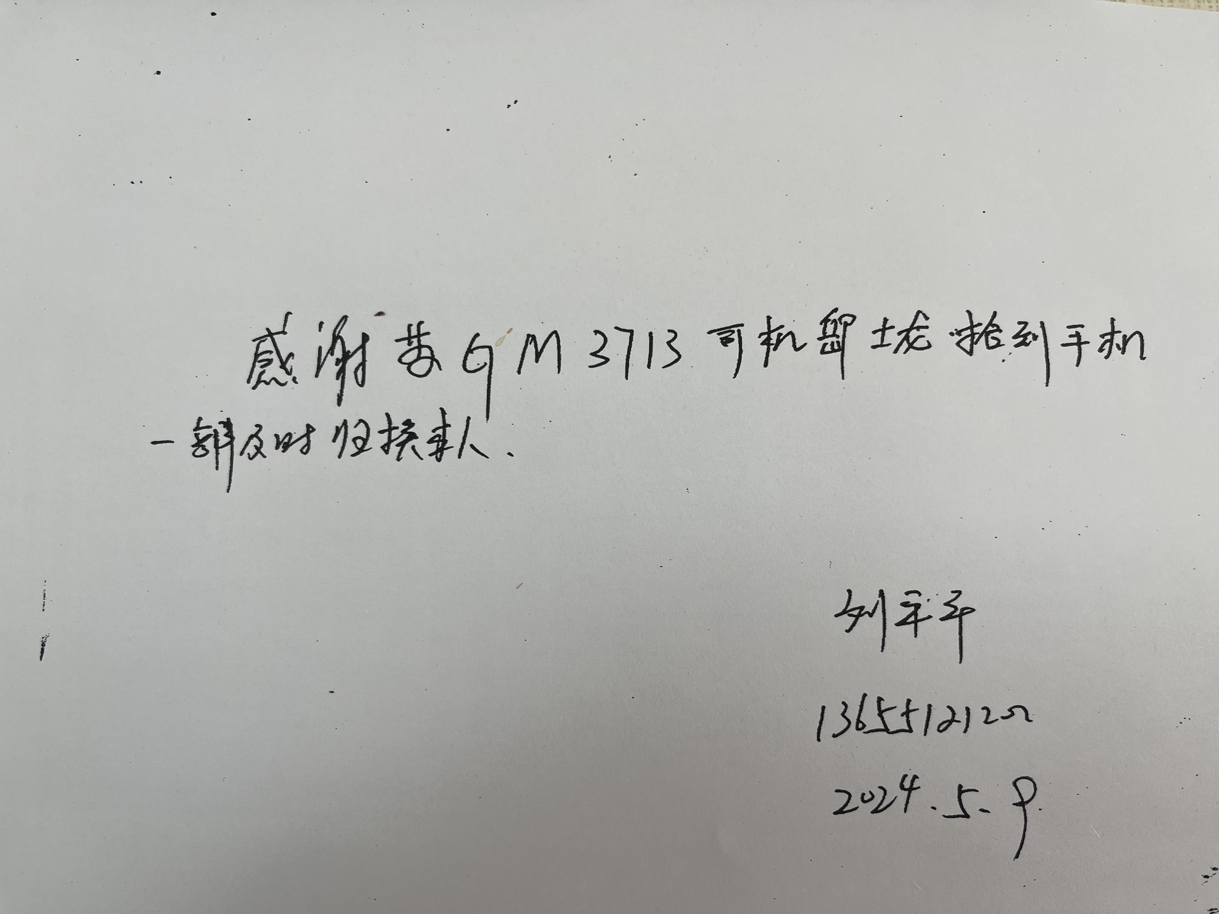5月9日中午11:30左右,乘客刘先生在连汽苏欣快客站办公室认领到自己丢失的手机时,不停地赞扬着灌南专线驾驶员邱士龙,他激动地说:“太感谢你们的热心帮助,让我顺利找回了手机,如果不是驾驶员的细心,手机丢失了很麻烦的。”