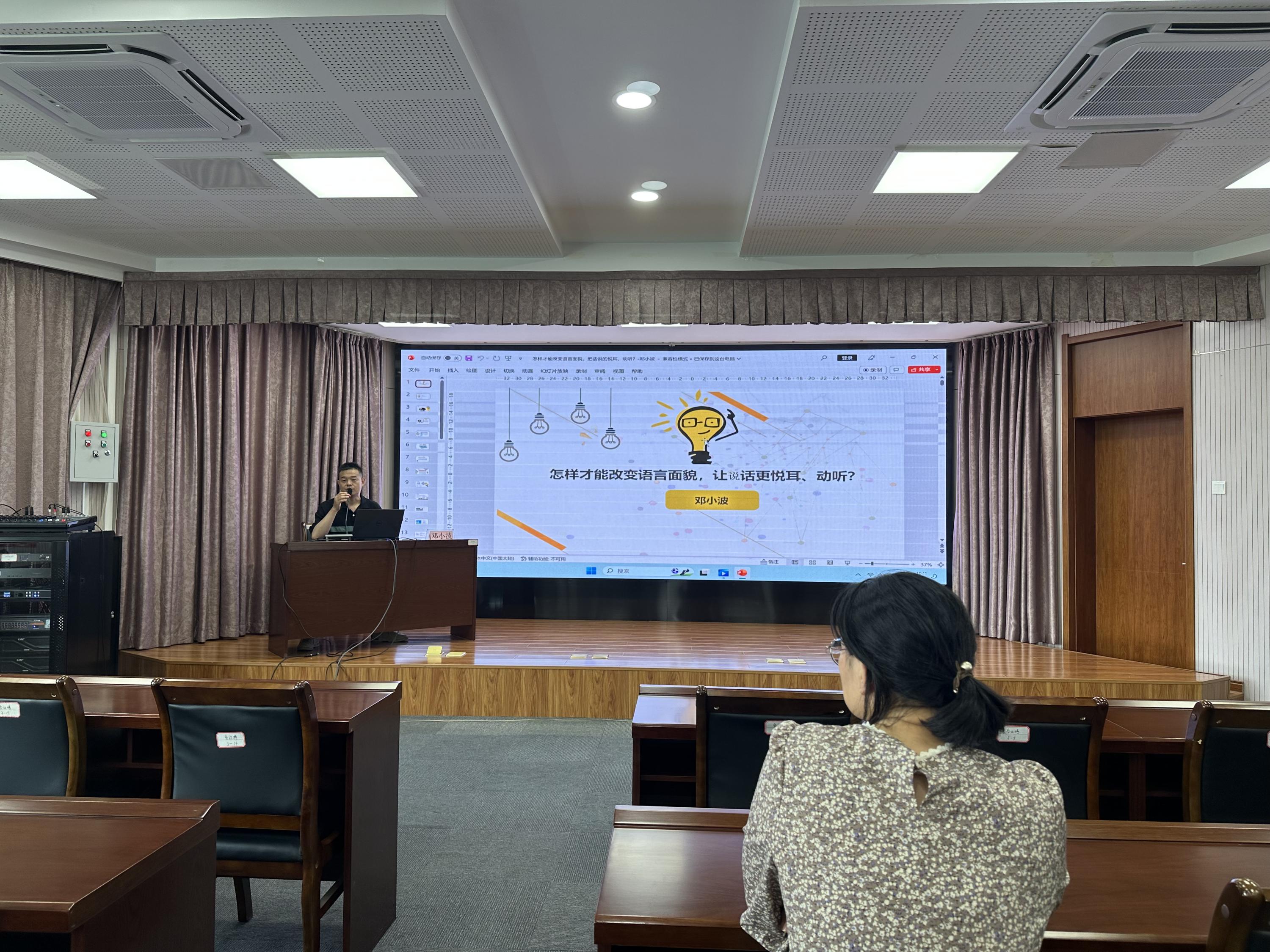 此次培训讲座,邓小波老师用生动的语言和精彩的案例,向参训人员展示了演讲的魅力。培训过程中,他围绕掌握普通话基本知识、规范普通话发音技巧、纠正方言发音等方面作了生动精彩的授课;通过讲解规范发音要领、示范朗读、学员跟读和现场点评纠错等方式,让学员全面了解普通话知识,初步掌握了普通话的技巧。