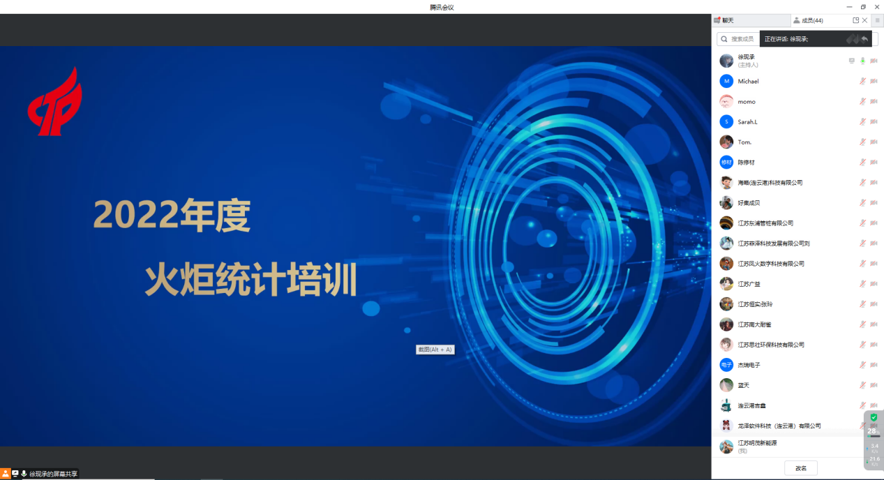 为进一步做好火炬统计工作,加强创新创业及高新技术产业化数据统计,提升火炬统计统计人员业务能力,确保2023年度火炬统计工作顺利实施。2023年2月27日上午,明茂公司参加由连云港高新区举办的火炬统计调查培训会。