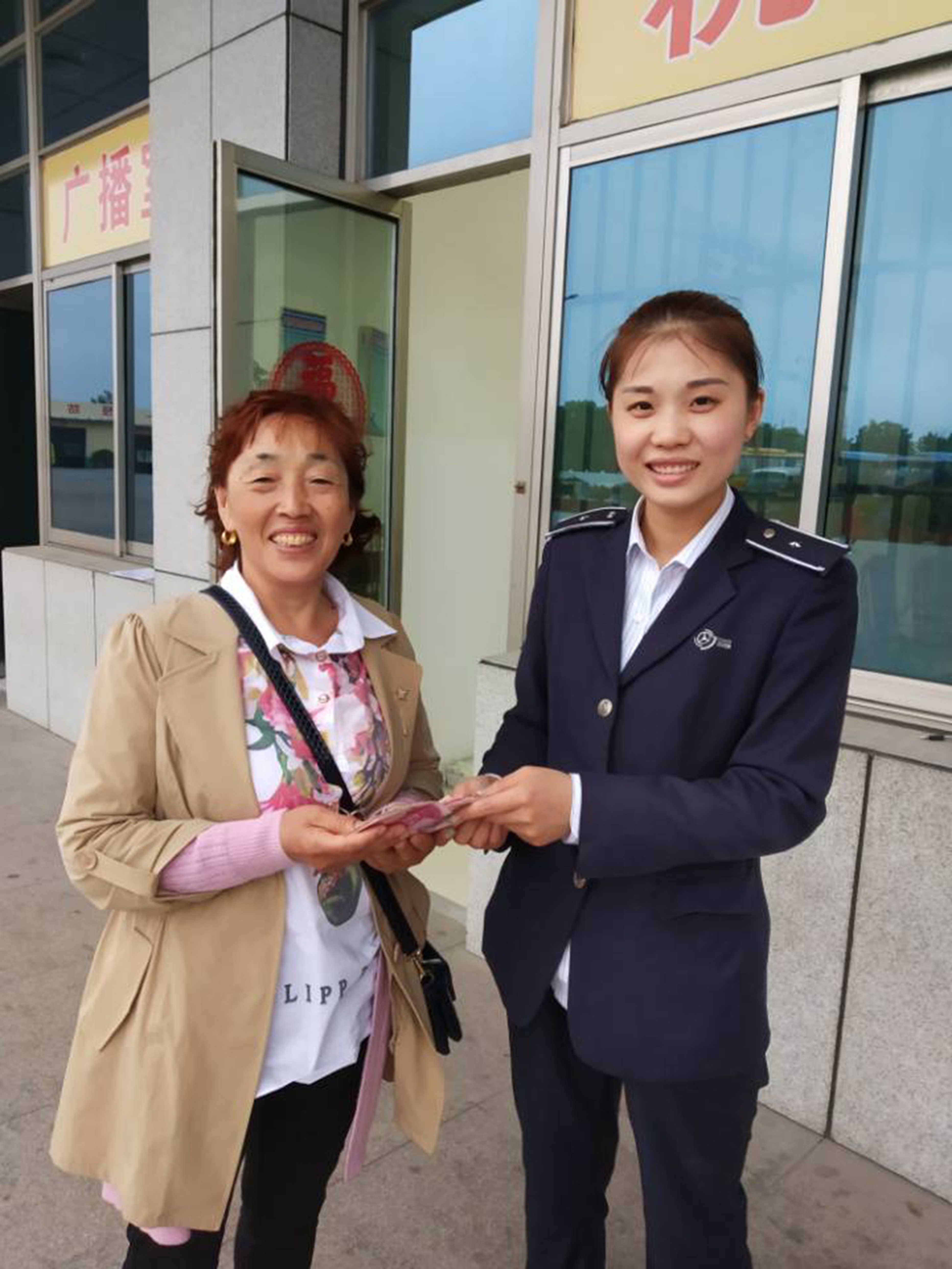 拿着失而复得的5000元钱,大妈很激动,一把握住工作人员的手连声说道:谢谢你们!还是车站好啊!车站的师傅好啊!太感谢了!