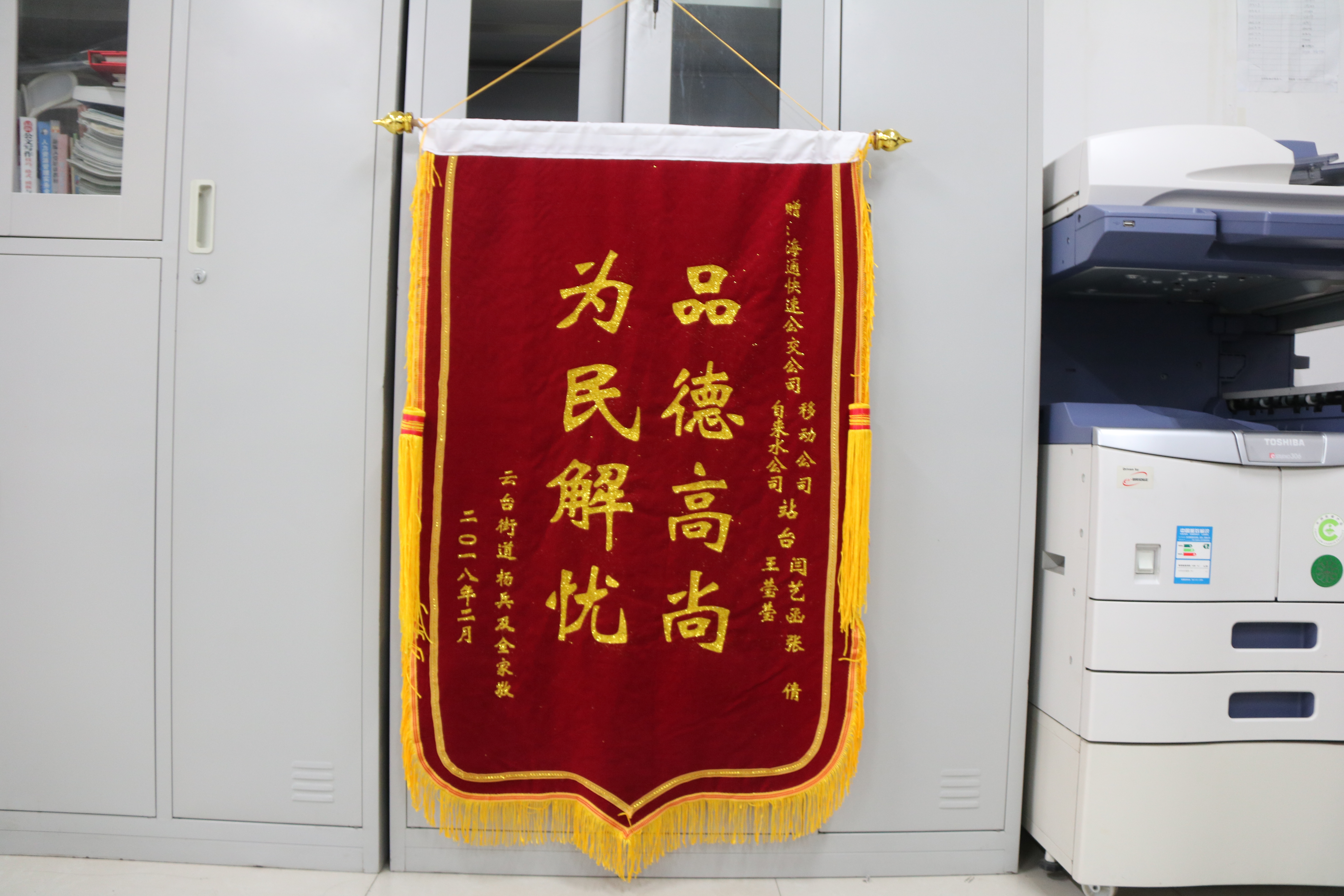几天后,杨先生代表全家将一面印有“品德高尚 为民解忧”的锦旗连同感谢信送到办公室,向当天帮助他的站务员们表达谢意。