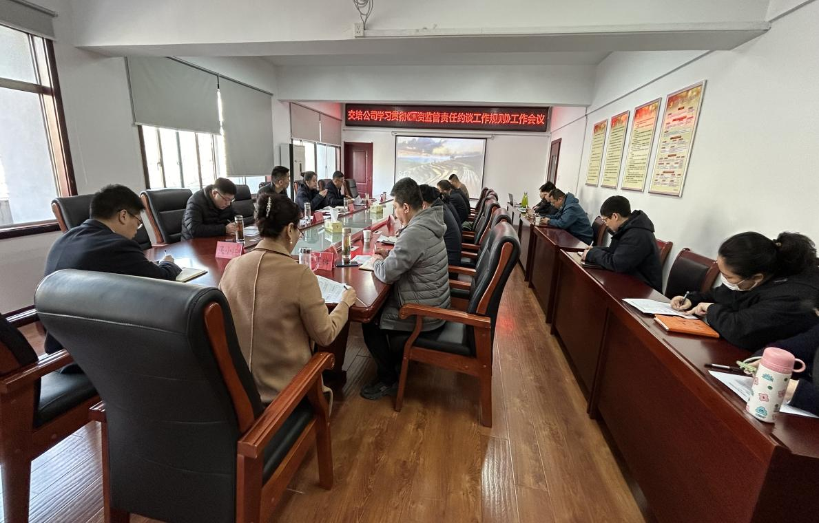 4月7日上午,交培公司组织开展《国资监管责任约谈工作规则》学习,公司领导班子、全体中层干部参加学习。