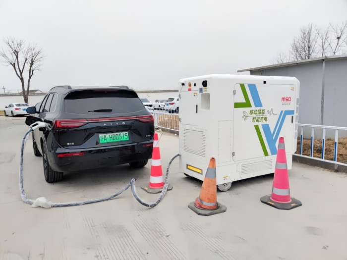 汽服公司海宏科技本次投放的移动充电机器人每台搭载209kWh磷酸铁锂储能系统,可满足5-6辆新能源汽车补能,最快15分钟就能充入30度电,堪称“行走的快充站”。为了方便在复杂车况下行驶,移动充电机器人搭载麦克纳姆轮驱动系统,依靠激光雷达+超声波避障雷达+360环视,即使在狭小的空间也能来去自如,灵活避让障碍物,轻松快速到达指定位置。