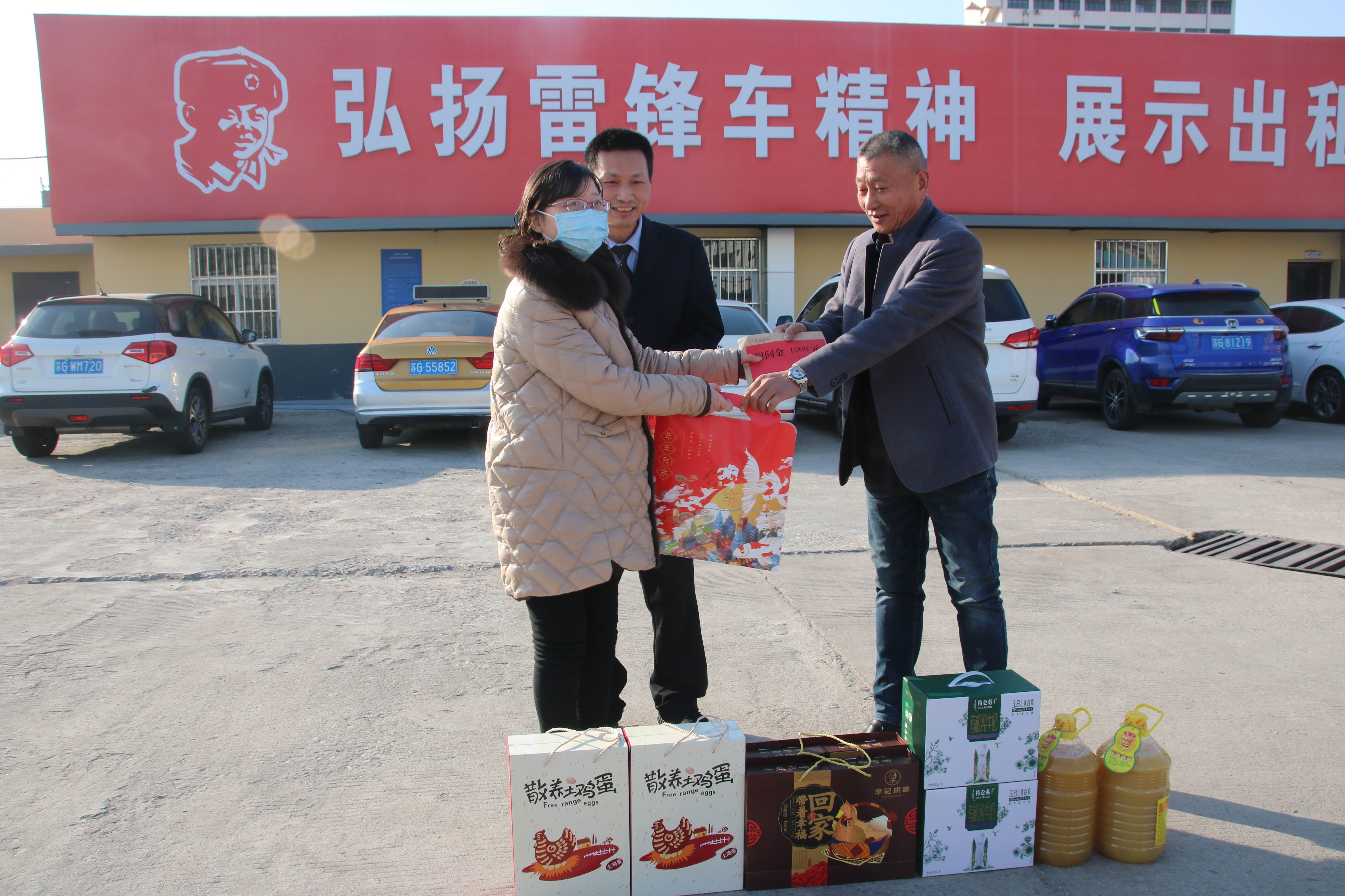 2月9日上午,海州区文明办沈艳主任专程来到汽服公司出租汽车事业部看望慰问了海州好人的哥朱洪树、韦号方。为他们带来节日礼物、并向他们致以新年的问候和祝福。