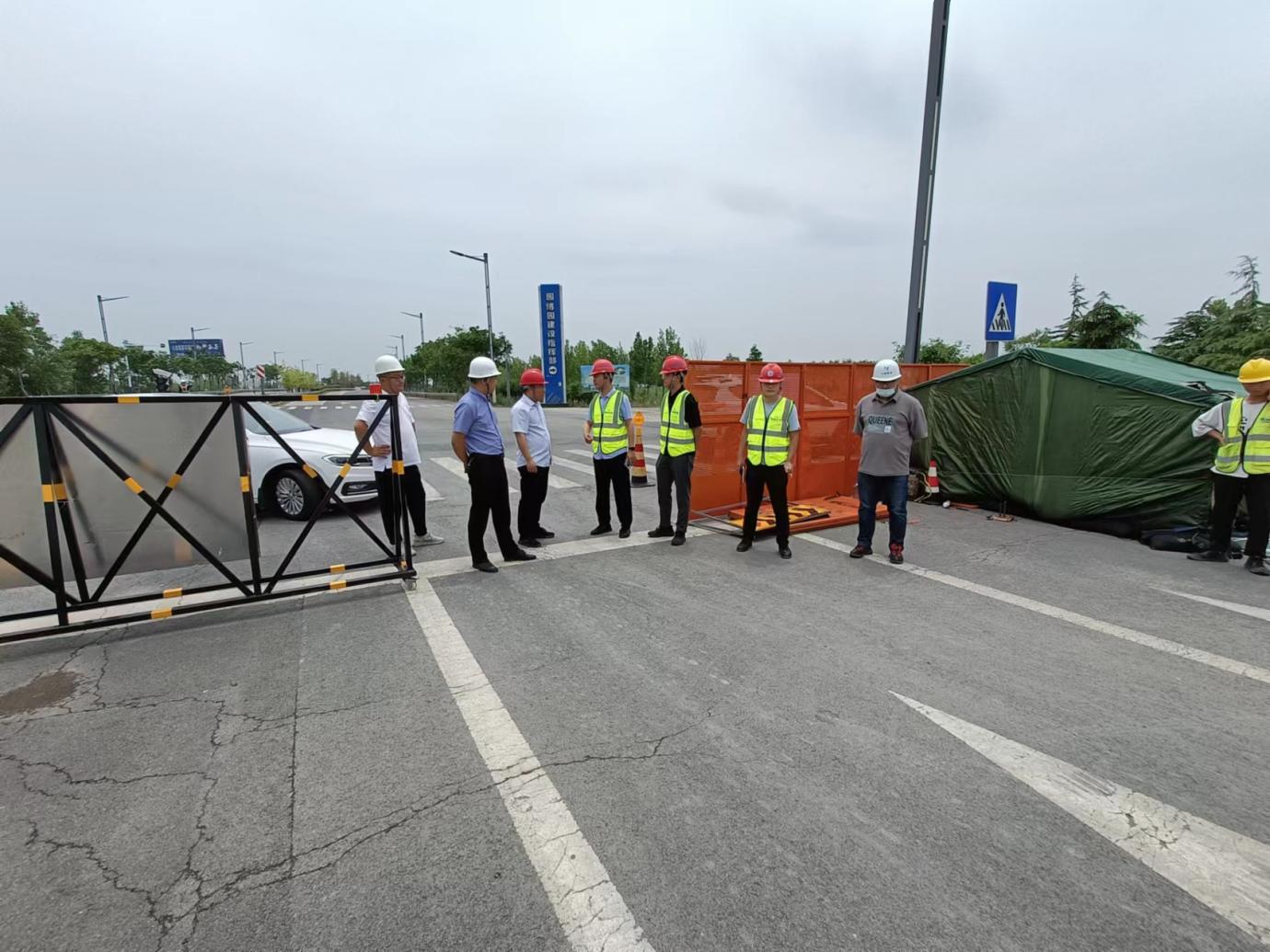 6月27日,连云港市交通华亿app最新版下载,华亿(中国)有限公司委托第三方科创检测对园博园外围坏境整治提升(徐新路)工程项目的安全内页资料和施工现场进行了6月份安全专项考评。