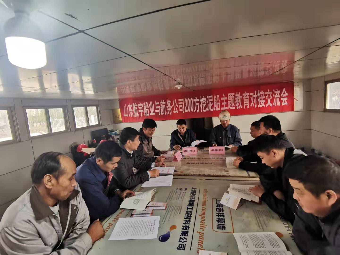 10月19日下午,航务公司与山东航宇船业在200方挖泥船就“不忘初心、牢记使命”主题教育进行对接交流。航务公司200方挖泥船因微山湖航道疏浚工程调迁至山东济宁对船舶进行船座上坞修理,为工程施工做准备。交流座谈前航务公司党支部主持工作副书记章军函拜访了山东航宇船业华亿app最新版下载,华亿(中国)机关领导,向航宇船业华亿app最新版下载,华亿(中国)学习做好主题教育的经验和方法,为做好驻厂修理200方挖泥船全体党员学习活动进行对接。航务公司部分领导班子成员、200方挖泥船全体党员、职工代表参加座谈交流。