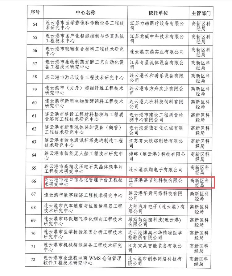 明茂港嘉公司组建的“连云港市港口信息化管理平台工程技术研究中心”已通过连云港市科技局专家评审及现场审核,获批“2022年市级企业工程技术研究中心”。