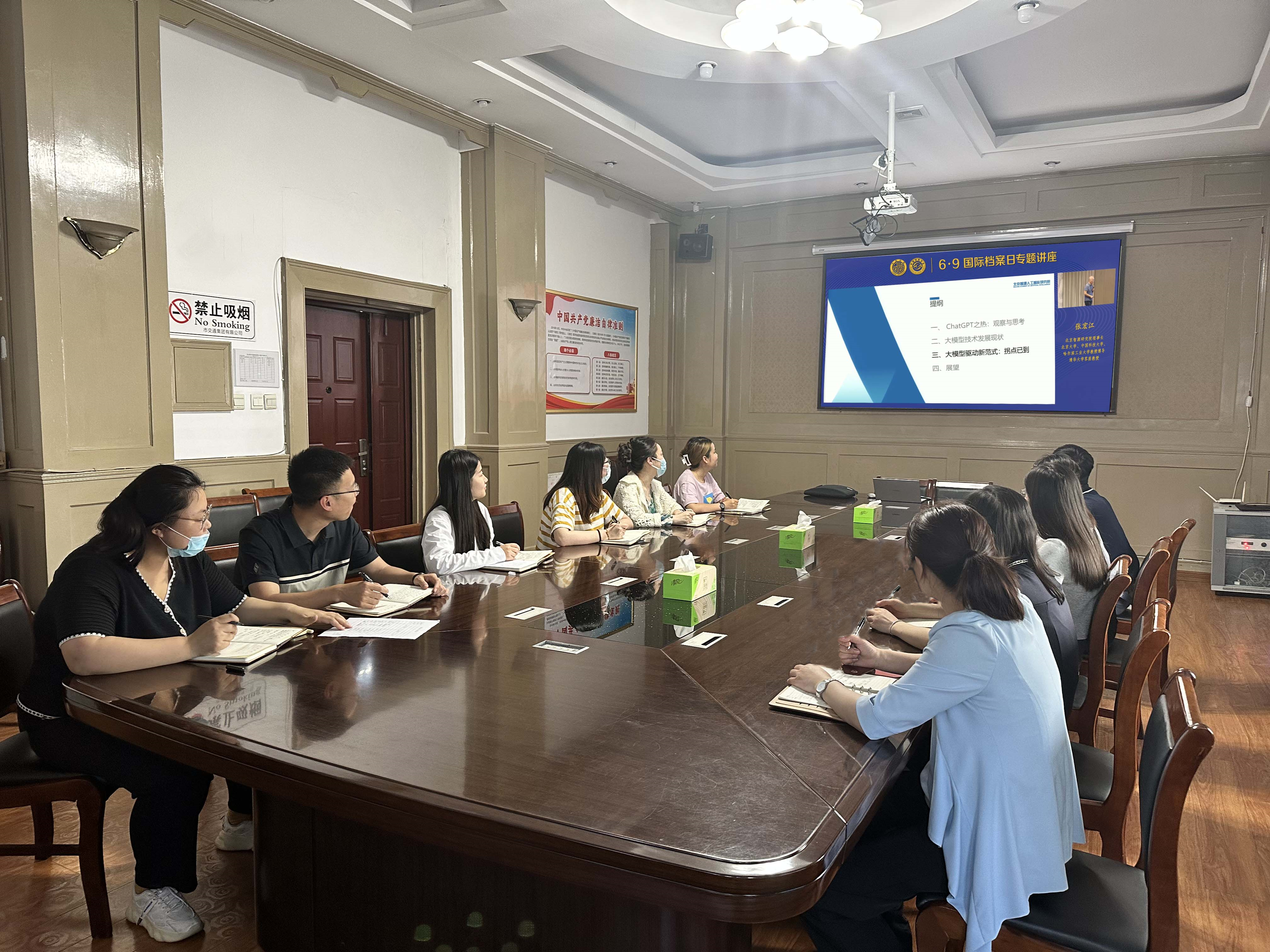 本次讲座张博士围绕档案工作深入解读和阐述了AI大模型的原理、意义和应用中的问题,希望大家在今后的工作中密接关注科技领域新技术、新成果,加强档案研究。加快实现档案工作自身现代化,大力推进档案事业快速发展。