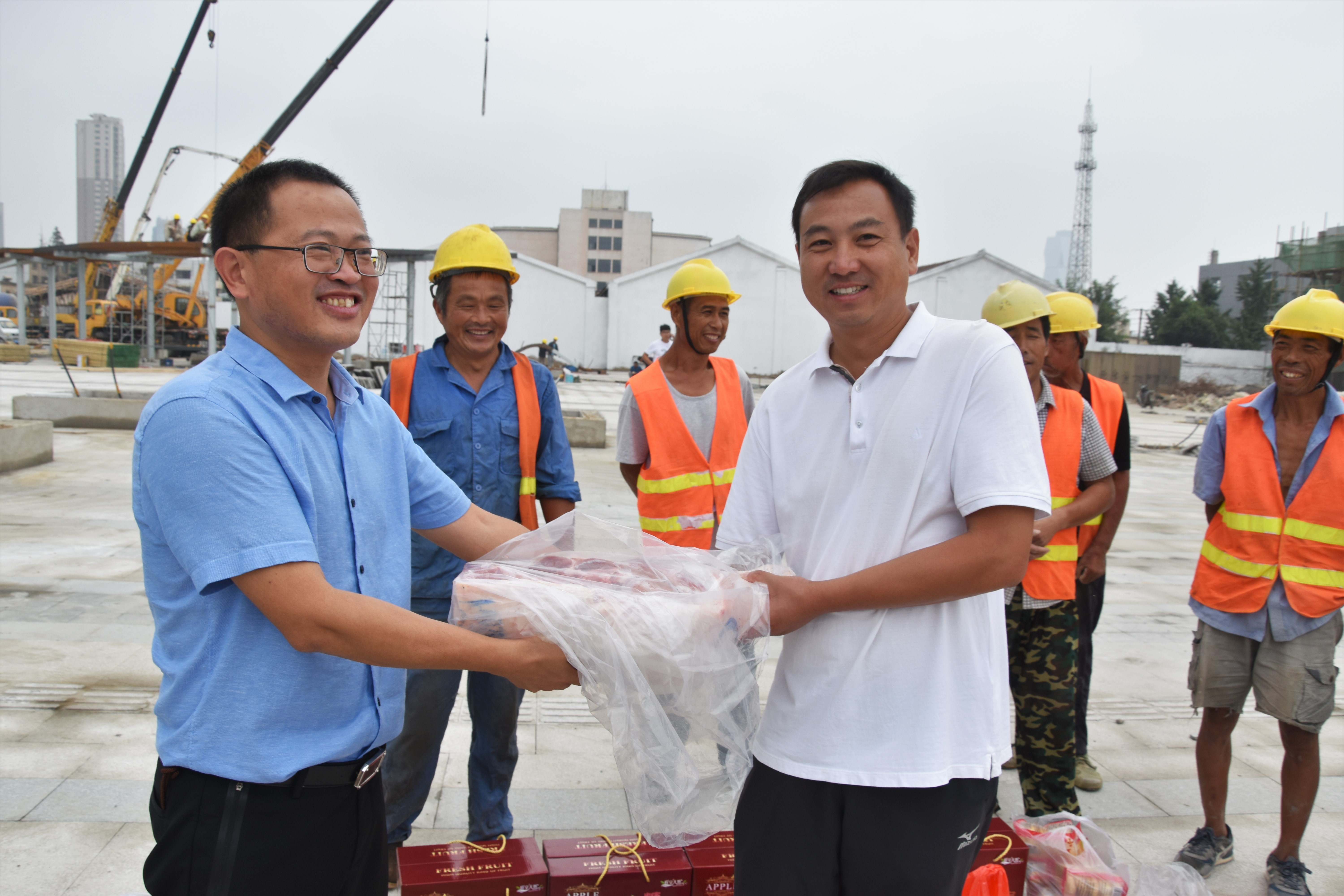 中秋佳节将至,9月10日,市交通华亿app最新版下载,华亿(中国)领导及工会带着猪肉、活鱼、月饼、水果等,走访市域列车等交通重点工程建设工地,慰问和感谢广大施工人员将在工地度过中秋佳节。