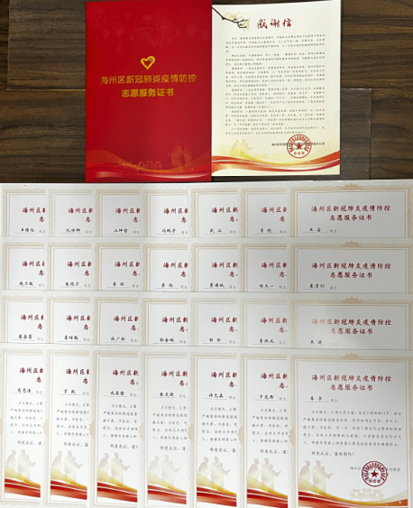 近日,物流华亿app最新版下载,华亿(中国)28名志愿者收到来自海州区新冠肺炎疫情联防联控指挥部办公室、幸福社区送来的志愿服务证书,对物流华亿app最新版下载,华亿(中国)给予疫情防控志愿服务工作表示衷心感谢。