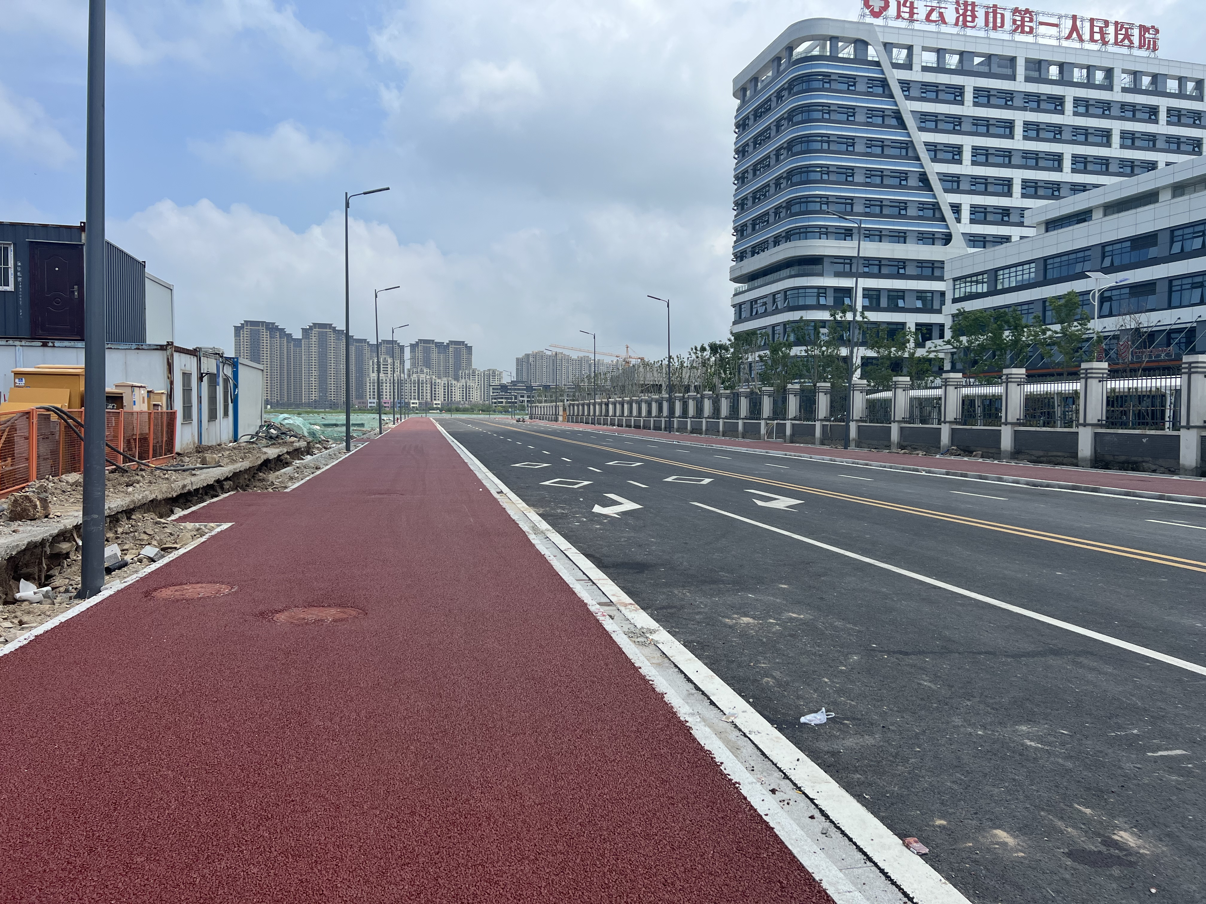 江苏海建市开发区人民医院西侧规划路非机动车道摊铺彩色沥青