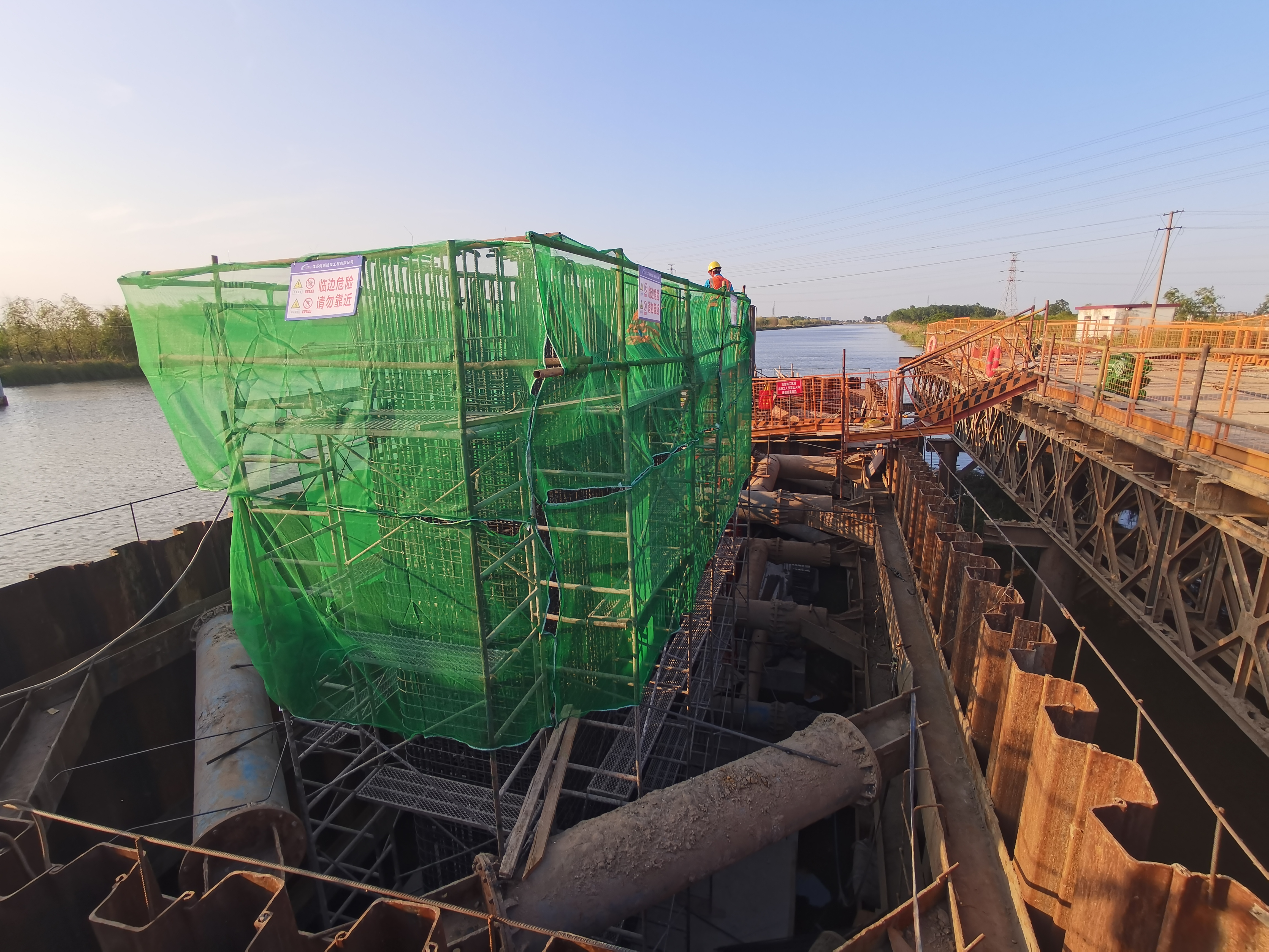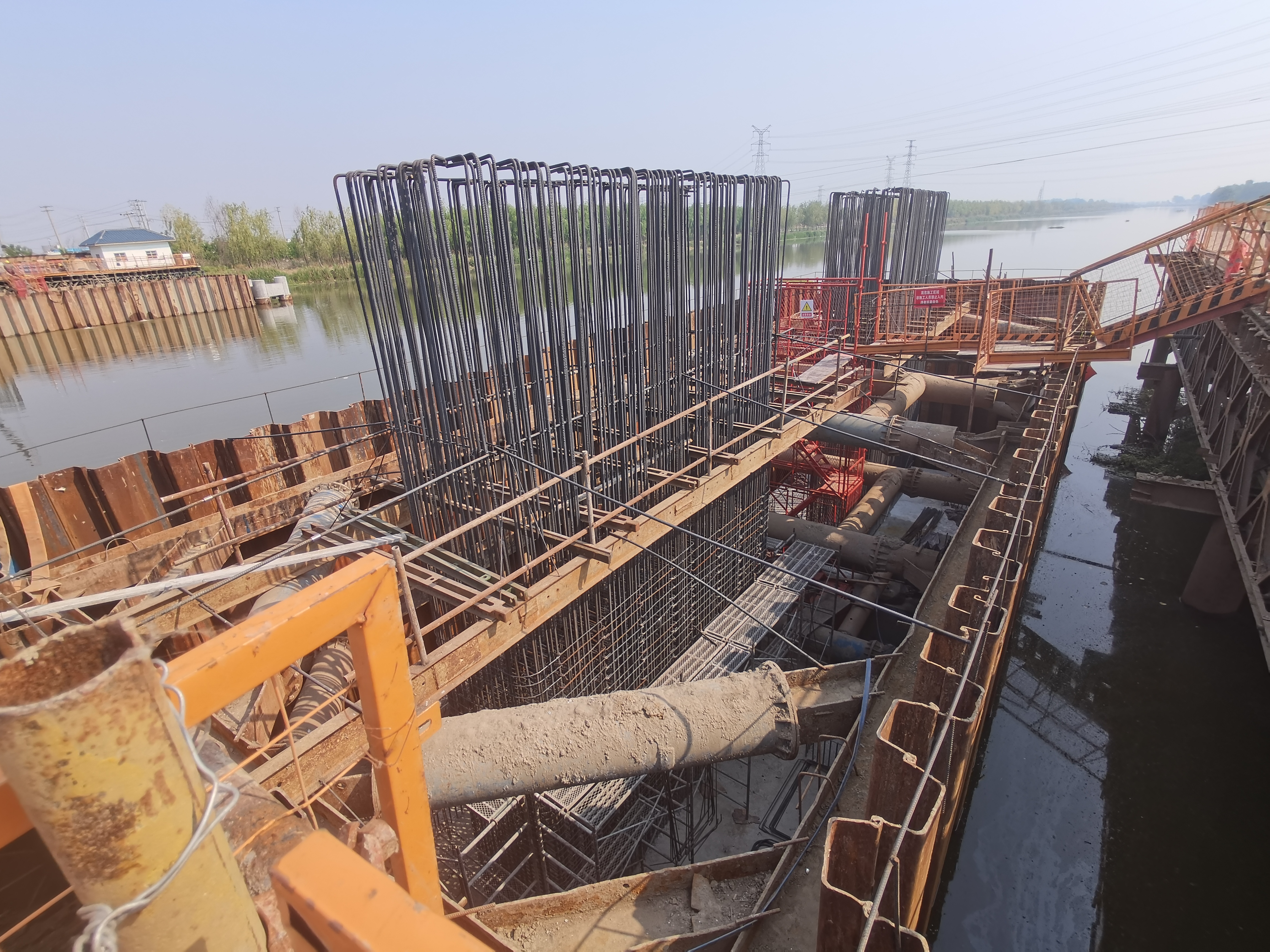 524,在江苏海建公司承建的402省道赣榆南环段路基桥涵工程施工现场,7#、8#主墩承台钢筋绑扎和模板安装及混凝土浇筑施工已完成402省道赣榆南环段路基桥涵工程主桥薄壁墩,单座薄壁墩设计高10.01710.010m,设计宽度6.5m,设计厚度1.8m墩身顶设计顶高程为7.6177.610m下一步将对7#.8#主桥薄壁墩进行施工。项目部严格按照程序组织编制施工技术方案并报监理工程师审批,组织班组人员及项目部管理人员进行施工安全技术交底。跨沭北运河大桥7#8#主桥薄壁墩4,采用C40混凝土浇筑,同时项目部不放过每个安全隐患,每天组织人员进行安全巡查,及时整改反馈,把每个安全隐患都消除在萌芽状态。