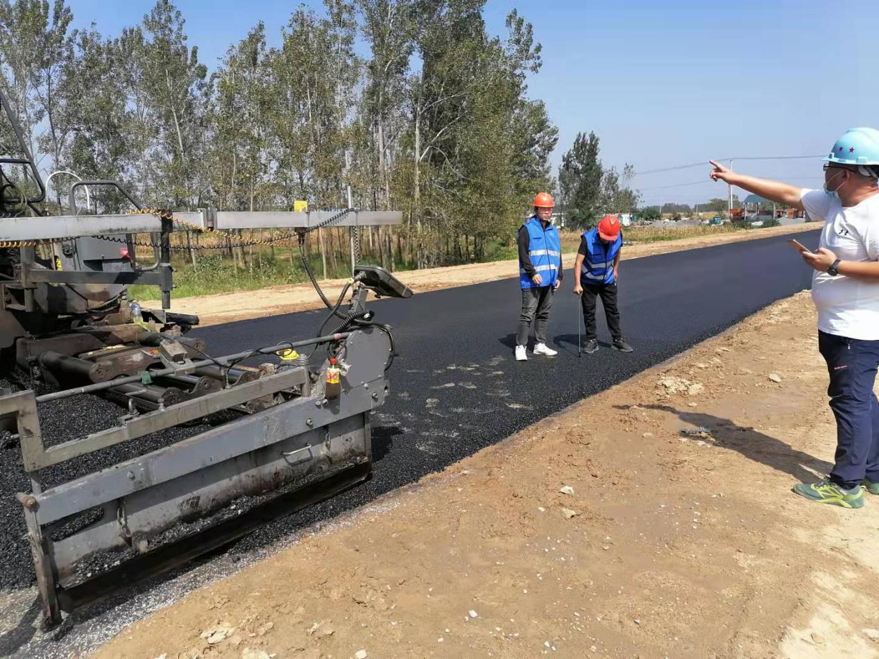 项目剩余路段东海段全长3.6公里,包含桥梁一座,平交道口一处,超高段四处。为保证工期稳步推进,项目部全员坚守岗位,倒排计划,科学组织,统筹安排,协调调配各项资源,以每24小时为汇报节点,适时调整推进计划,全力推进工程进度。在路面沥青摊铺现场,摊铺机手和现场施工人员铆足干劲,有条不紊地忙碌着。