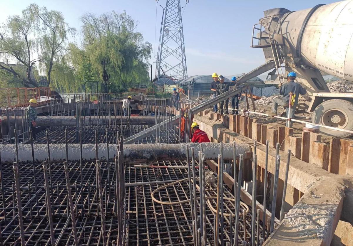阳光灿烂的五月,随着东方冉冉升起的朝阳,江苏海建329国道上虞盖北至道墟段改建工程第TJ01标段又开启了忙碌的一天。上午九点,项目部已经完成根据今天的施工安排,13#主墩左幅承台大体积混凝土的浇筑,下午三点,已经开始进行合同段盖梁首件混凝土的浇筑,施工现场忙中有序,热火朝天。