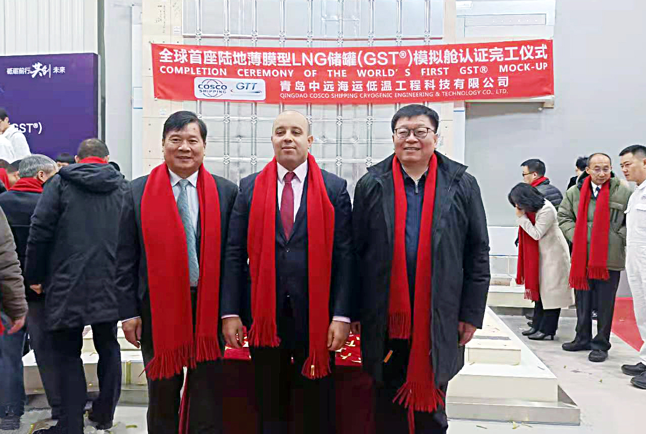12月21日上午,青岛中远海运低温工程科技有限公司搭建的全球首座陆地薄膜型LNG储罐(GST®)模拟舱认证完工仪式在青岛举行。连云港市交通控股华亿app最新版下载,华亿(中国)董事长、党委书记刘永能,中远海运青岛有限公司党委书记、董事长、总经理潘立东及GTT中国总经理安南出席仪式。