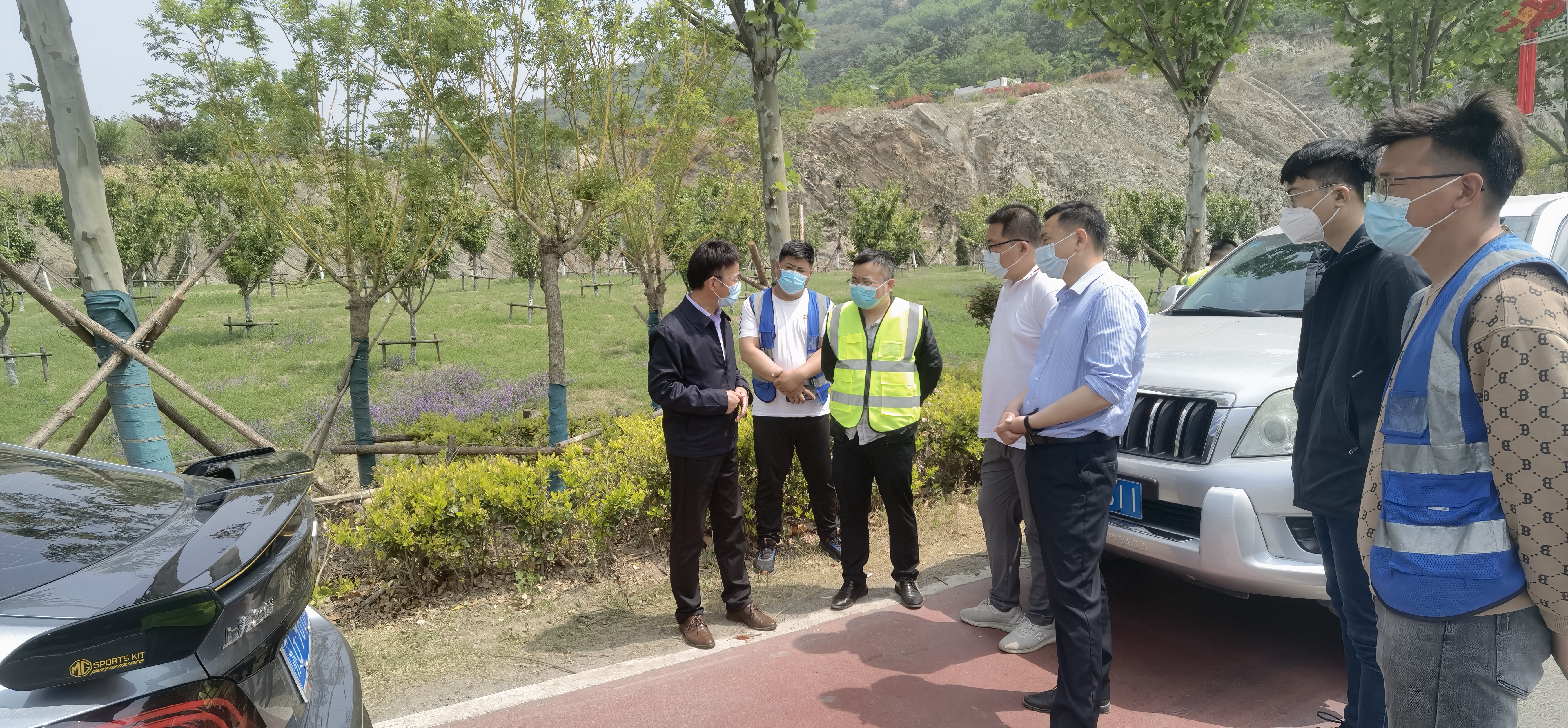 4月26日,交通华亿app最新版下载,华亿(中国)总经理宣有金、副总经理顾卫星来到园博园外围环境整治提升(徐新路)工程施工现场,检查项目推进情况,并现场进行了督导。