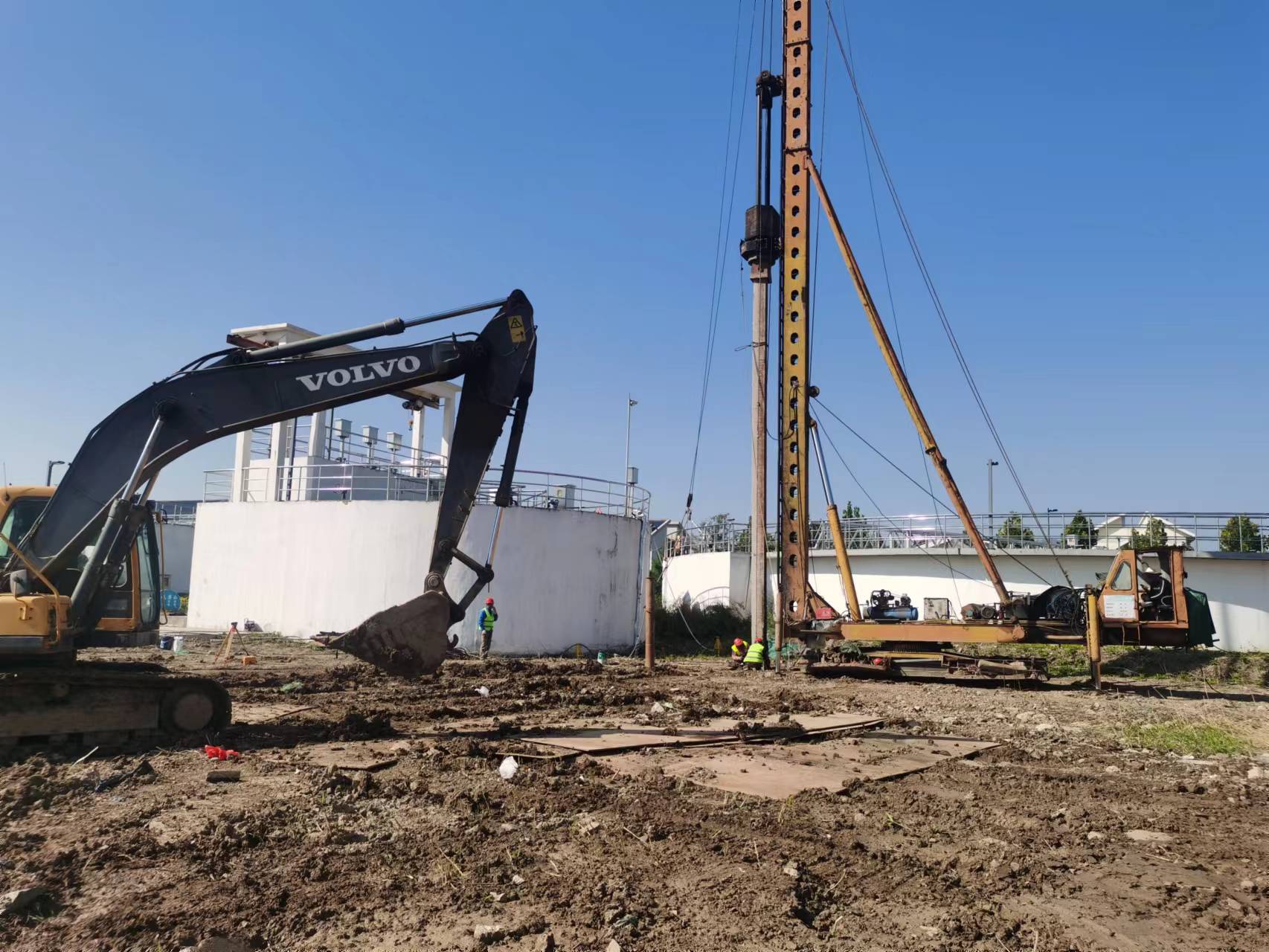 在南城污水处理厂二期扩建项目施工现场,项目部人员忙碌在各自的工作岗位上,党员干部更是冲锋在前,全力以赴追序时、赶进度。目前,项目已完成驻地建设、方桩试打、高压旋喷桩机进场安装,内业方面质量和安保体系已建立,锤击桩施工方案及基坑围护方案已审批,徐圩公交场站光伏项目施工扫尾工作全部完成,钢结构大棚焊体探伤及漆膜厚度已通过检测。