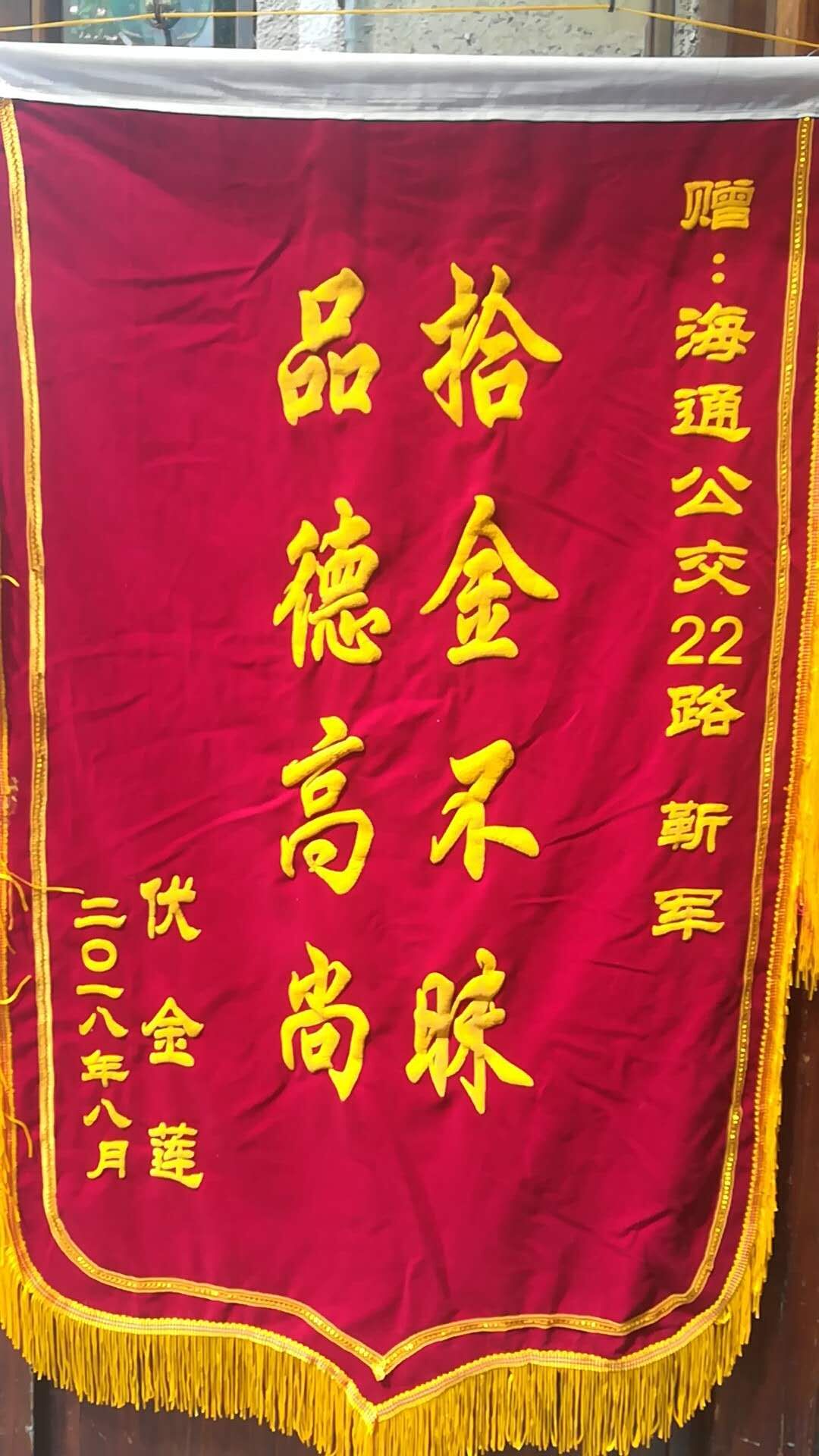 当天下午,金女士带着一面写有“拾金不昧,品德高尚”的锦旗来到了公司办公室,她表示:丢失的包是她婆婆的,手机虽然只价值两千元,包里的钱不多,但是老人向来节俭,丢了东西回家后很懊恼,一直很自责,午饭都没有吃好,直到接到电话说东西找到了,老人才安下了心。
