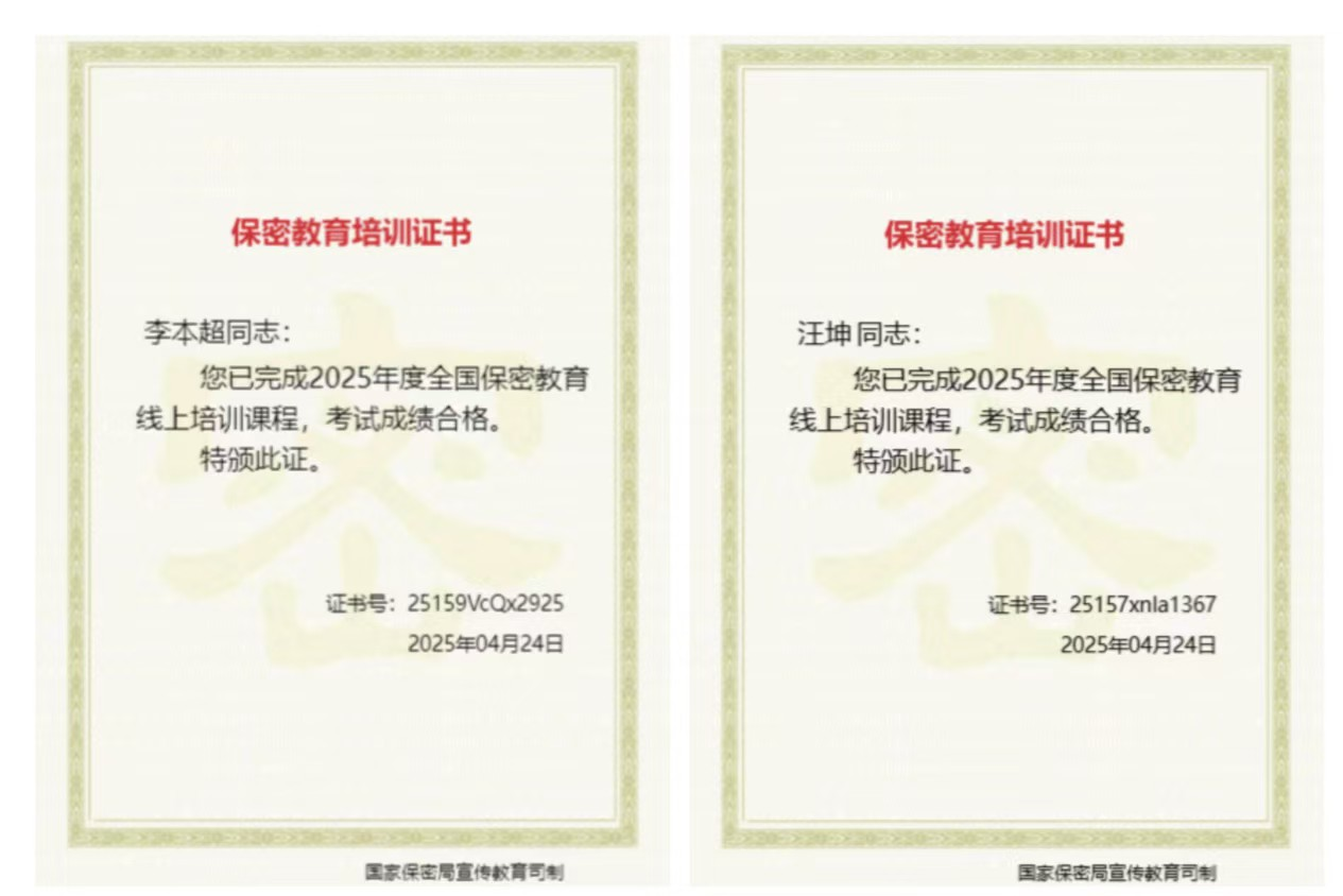 活动期间,全体干部职工积极响应公司的安排部署,落实行动,登录注册中国保密在线网站培训系统,迅速掀起了学习保密知识的热潮。党员干部职工充分利用休息时间,学习保密知识,积极参加超过4个学时的线上培训及考试,系统学习保密优良传统、保密法律法规、保密技术防范、保密警示教育等内容,在考试过程中,认真答卷,以优异的成绩通过了考试,并取得了线上颁发的“保密教育培训证书”。