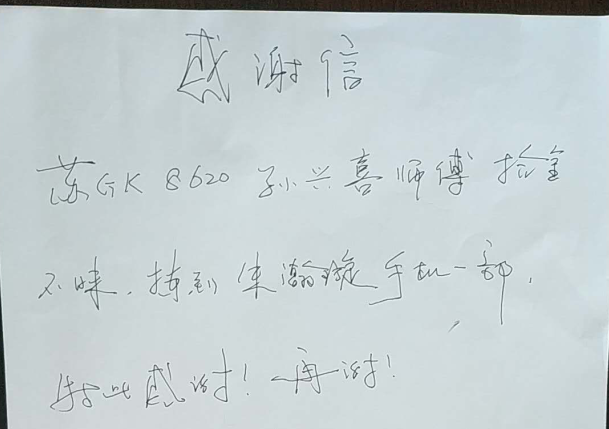 近日,乘客朱先生乘坐公交37路苏G8620E车时,因下车匆忙不慎将手机丢失在车上,驾驶员孙兴喜到站打扫卫生时发现手机并及时交到二分公司,经过二分公司管理人员和驾驶员的多方努力,终于联系到失主朱先生。朱先生来到二分公司,经核实身份领取手机后,他对驾驶员孙兴喜师傅表示万分感谢,当场写下感谢信,感谢驾驶员孙兴喜拾金不昧的精神,感谢工作人员的热心帮助!