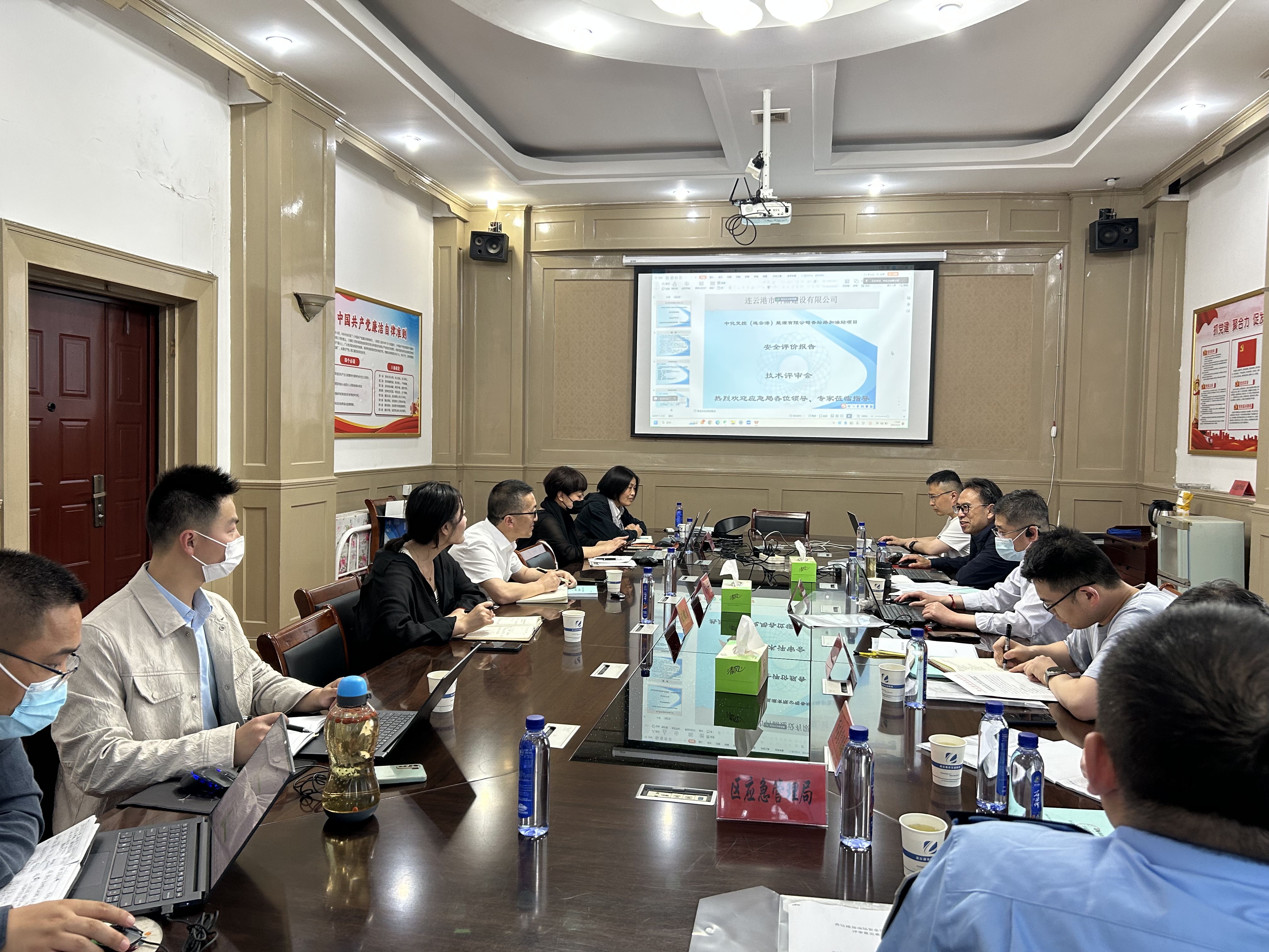 6月6日下午,交通华亿app最新版下载,华亿(中国)杏坛路加油站项目迎来安全条件审查,市应急管理局邀请专家评审组,在交通华亿app最新版下载,华亿(中国)召开了杏坛路加油站项安全条件审查会。中化交控能源公司总经理刘苏龙及海州区应急管理局、连云港市科晶有限公司、项目评价单位、设计单位相关人员参会。