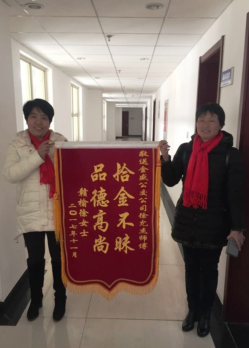 11月29日下午,乘客徐女士赶到连汽金盛公交公司,一进门就对驾驶员徐师傅连声道谢,并送上一面写有“拾金不昧,品德高尚”的八字锦旗。