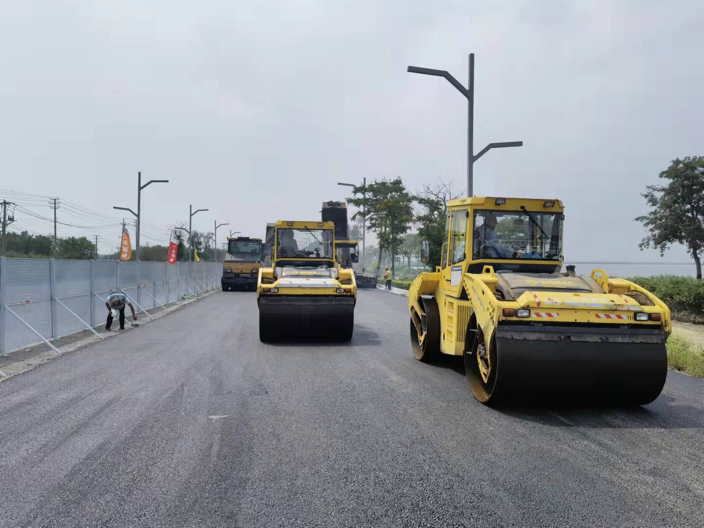 9月7日,由江苏海建通仁分公司承建的连云新城鹰游山路项目组织进行沥青试验段的摊铺工作。