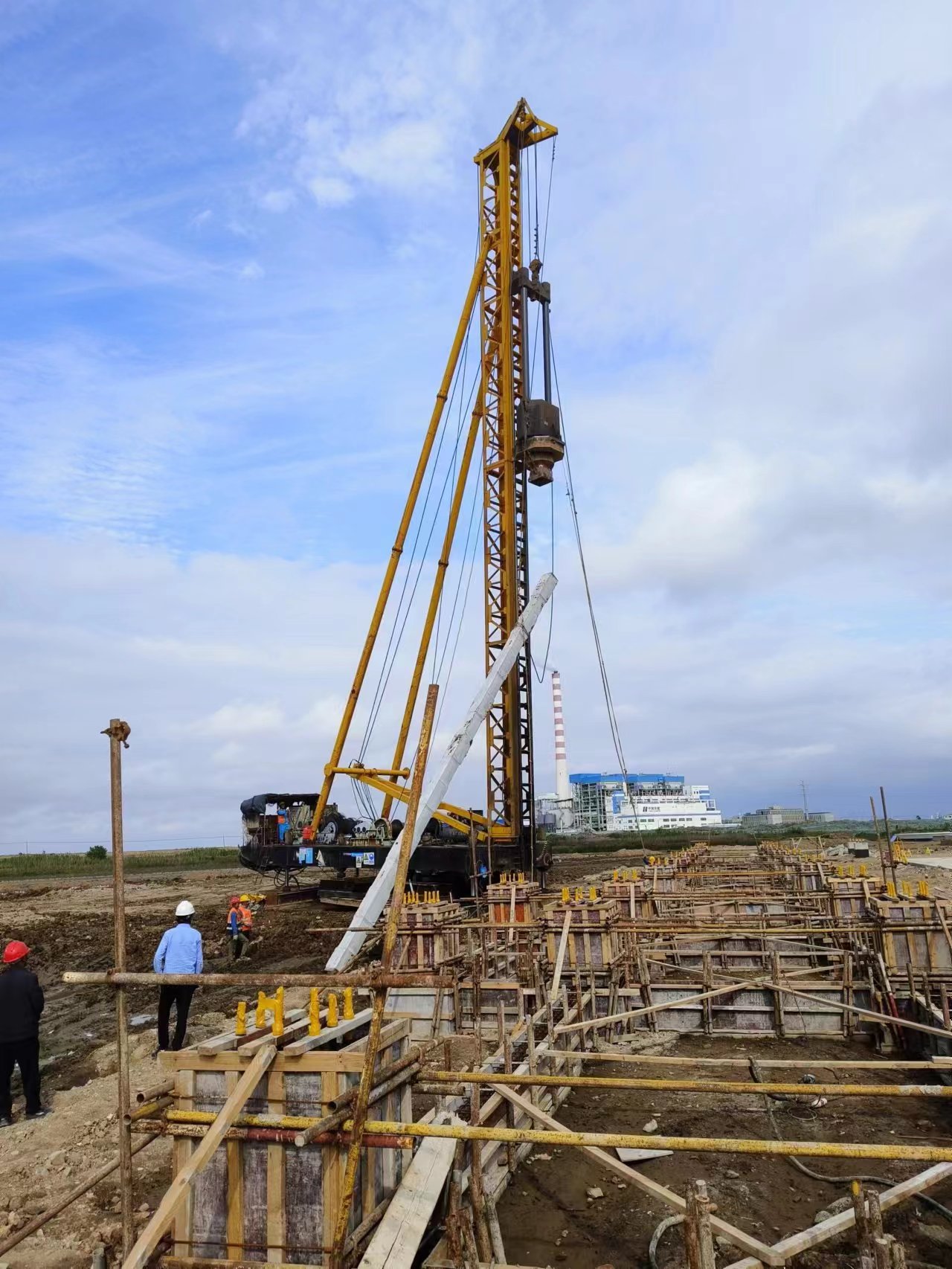 本项目地处燕尾港临港产业园,邻近海边施工,现场地质条件较差,桩基数量多,间距小,施工机具操作困难。项目部上下一心通过现场土体换填、跳打施工等多种方法主动创造有利条件,避免作业冲突,在符合安全、质量的前提下,抢干快干,顺利完成了桩基施工目标。