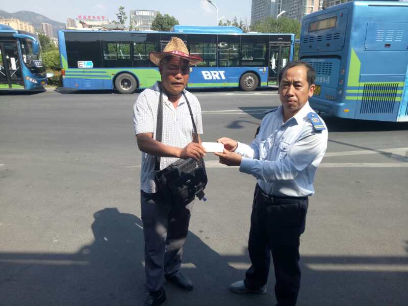 6月13日,乘客刘为柱在乘坐公交游3路苏G28211车到墟沟时,由于下车匆忙不慎将手机丢失在车厢内。驾驶员邓兆兵到站打扫卫生时发现座位上有一部手机,捡到后及时交到公司办公室,经多方查找联系上失主刘为柱,失主刘先生来到公司领回丢失的手机时非常激动,对驾驶员邓兆兵表示感谢,同时感谢公交公司培养这种品质高尚的人!