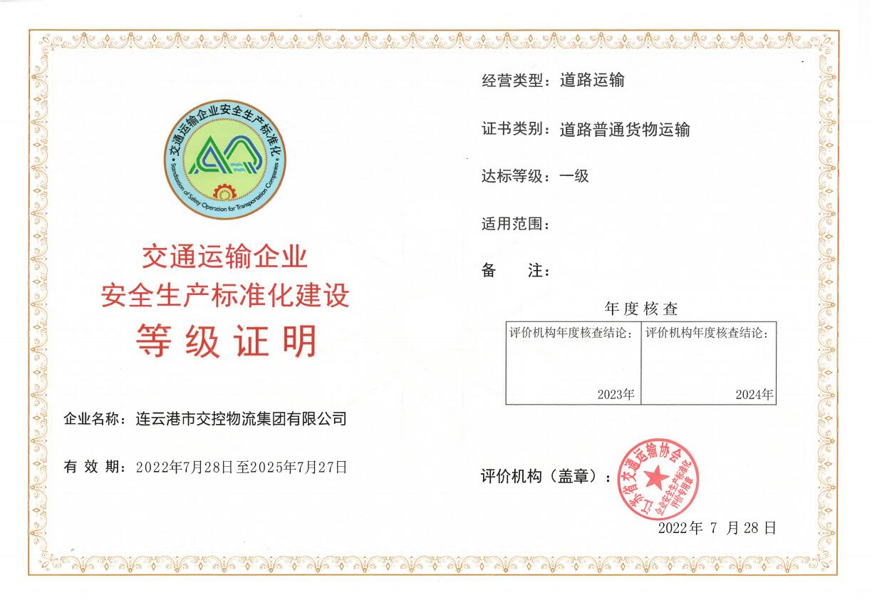 8月5日,物流华亿app最新版下载,华亿(中国)通过道路运输企业安全生产标准化一级换证评审。自2018年启动安全生产标准化建设以来,物流华亿app最新版下载,华亿(中国)通过强化基础,完善管理,促进安全生产长效机制建设,于2019年获得交通运输部颁发的“企业安全生产标准化一级证书”,2022迎来第一次换证复评。