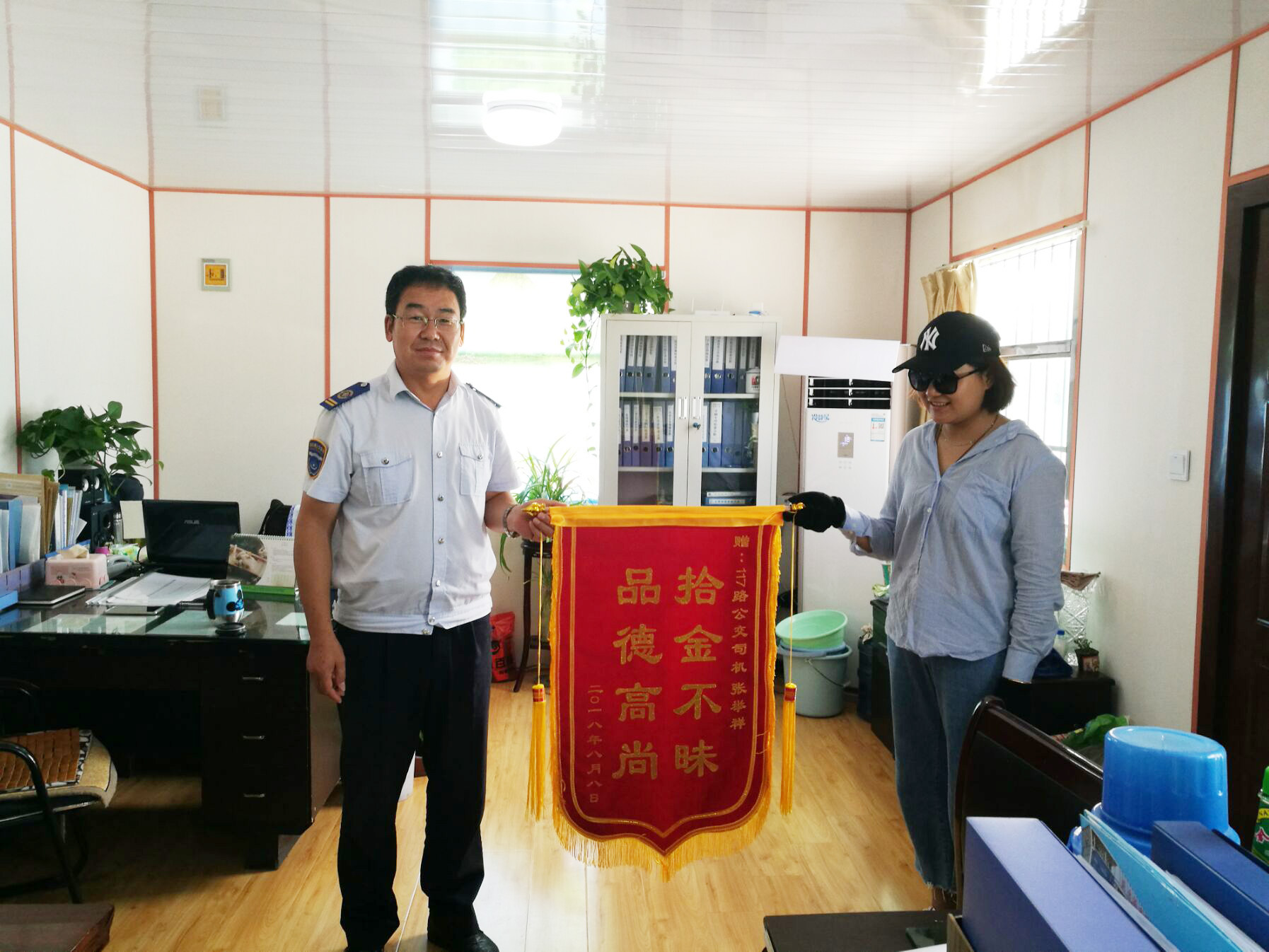 洪女士得知自己的包已找到,欣喜万分,当天晚上与张师傅联系,经过核实,她顺利取回了自己的包。次日,洪女士送来一面锦旗,感谢张举祥师傅对她的帮助,替她挽回了经济损失。