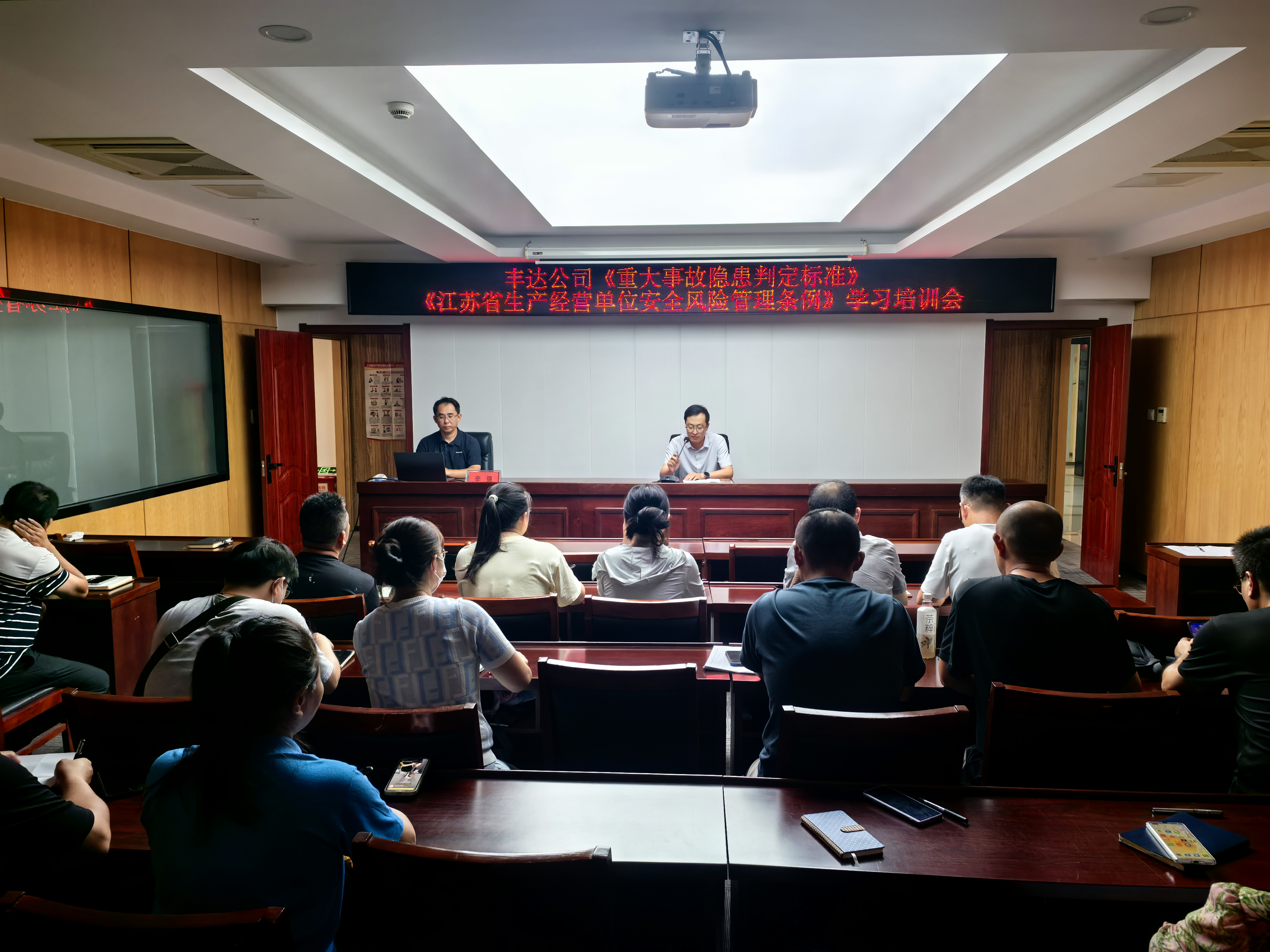 李强教授对《工贸企业重大事故隐患判定标准》《江苏省生产经营单位安全风险管理条例》进行了深入解读,并结合丰达公司实际,在贯彻相关制度过程中重大事故隐患构成要件、安全风险制度建立、安全风险辨识评估、安全风险管控措施应参照的新要求、新规范作了归纳、讲解。