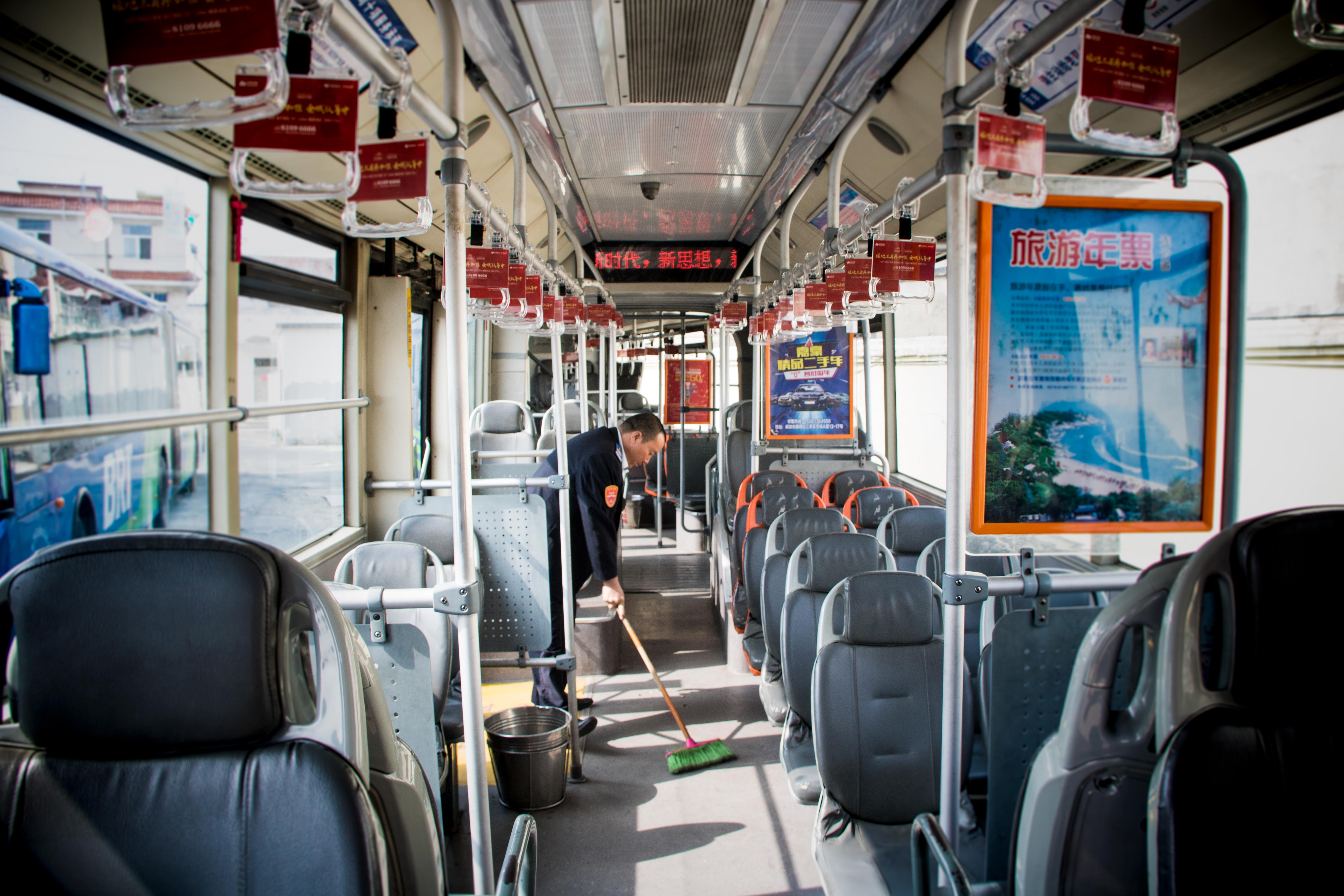 一趟线路跑完,将车辆外面的灰尘擦拭干净,保证车厢内外卫生整洁;