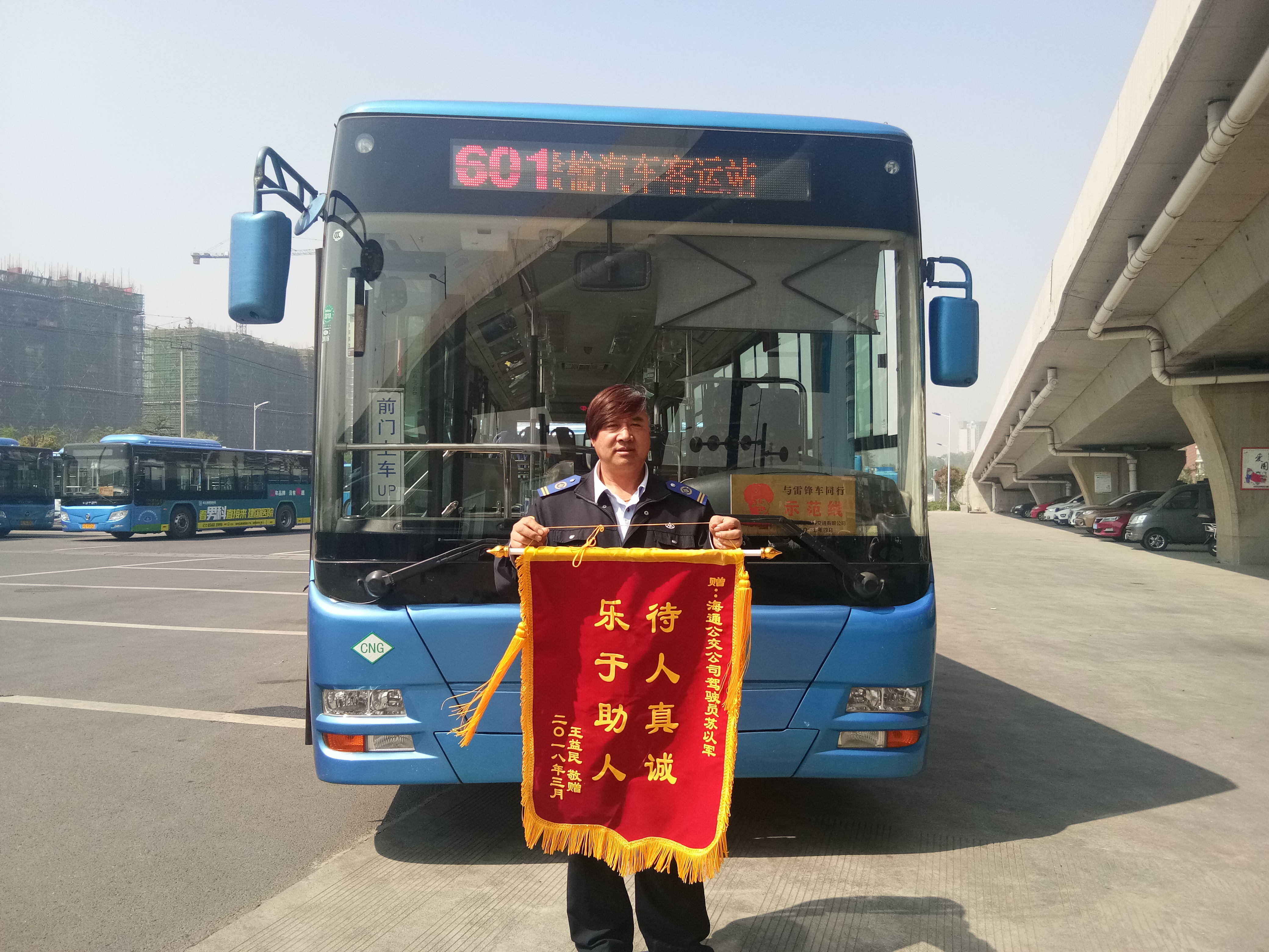 据送锦旗的王师傅说,“自己平时乘坐601路公交车上下班,经常乘坐苏以军的车,他对待任何乘客都是非常热情和关心照顾,无论是腿脚不便的老年人还是活泼好动的孩子,他都主动跟乘客打招呼并上前帮扶,及时提醒他们上下车小心,注意安全,下雨下雪天更是细心服务,让坐他车的乘客都能感到一丝温暖,大家都骄傲的说苏以军师傅是‘中国好司机’。”