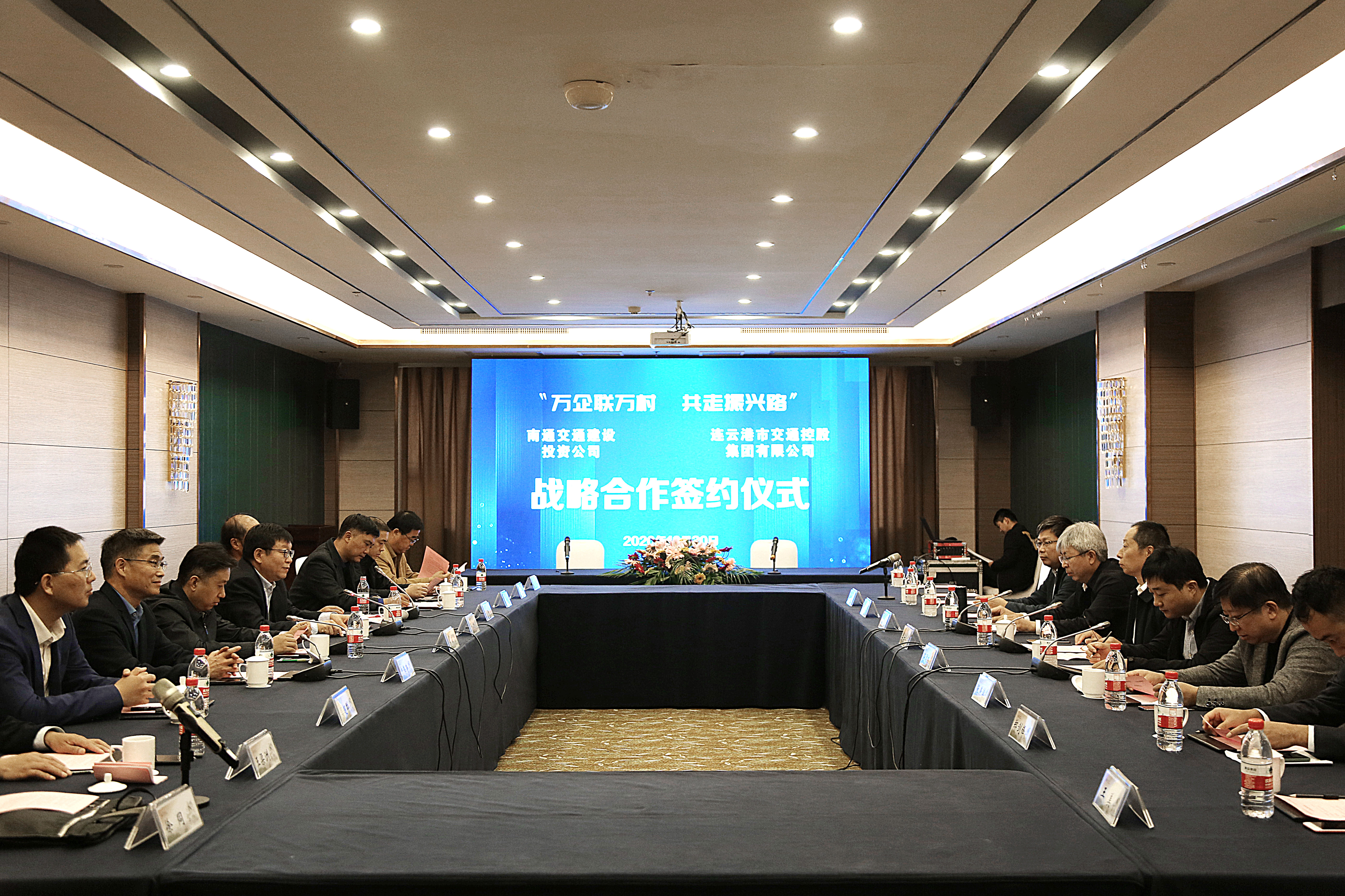10月30日上午,连云港市交通控股华亿app最新版下载,华亿(中国)和南通交通建设投资公司签订“万企联万村 共走振兴路”合作协议、战略合作协议,连云港市国资委党委委员、副主任许峰;南通市国资委党委委员、主任助理季士军;连云港市交通控股华亿app最新版下载,华亿(中国)董事长、党委书记刘永能,总经理仲伟涛,副总经理孙超;南通交通建设投资公司总经理徐中,党总支副书记张燕滨等参加了签约仪式。