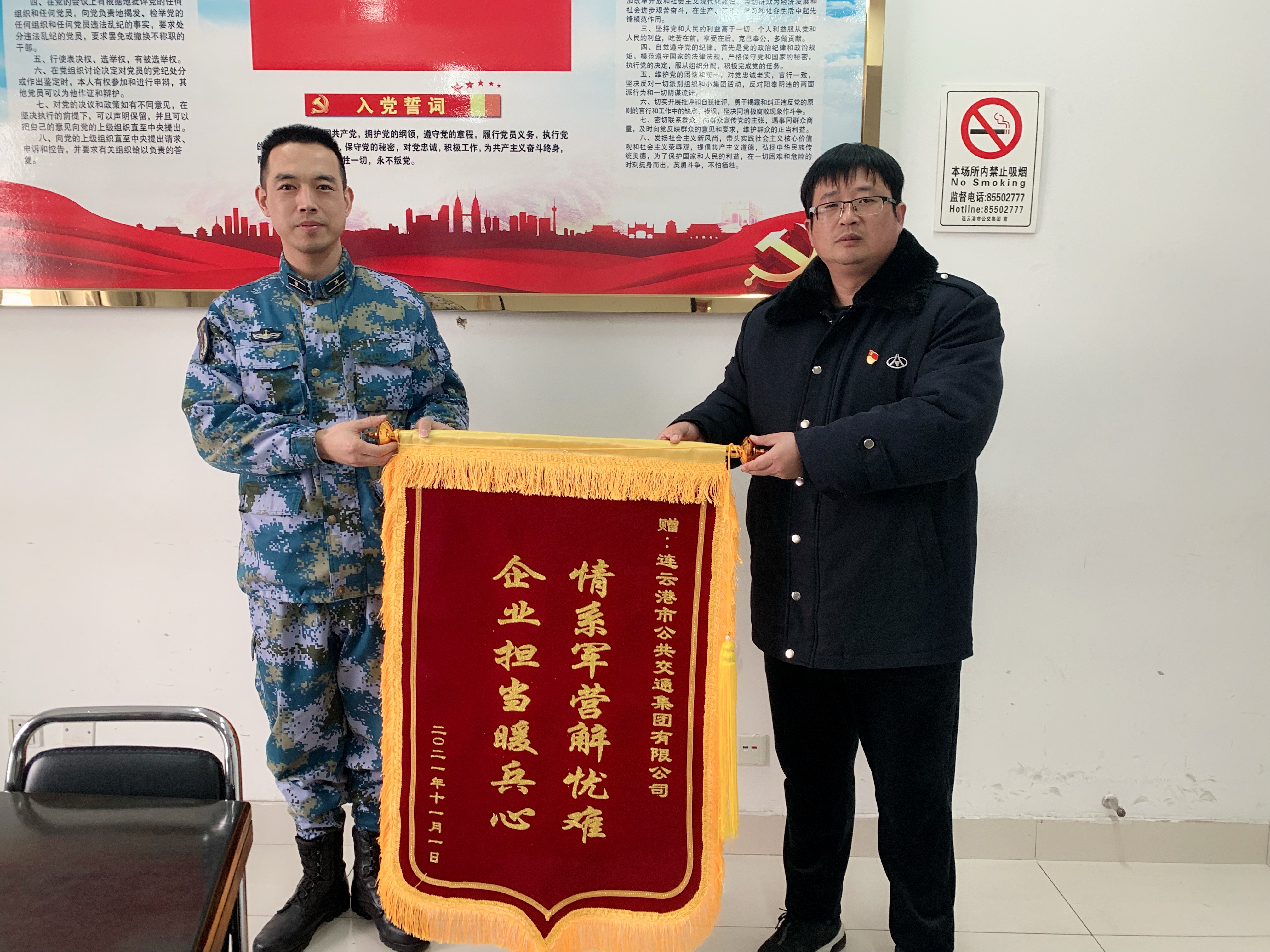 1月16日,解放军某部海军营区官兵代表特地赶到公交华亿app最新版下载,华亿(中国)公交事业二部,送来了一面写有“情系军营解忧难 企业担当暖兵心”的锦旗。